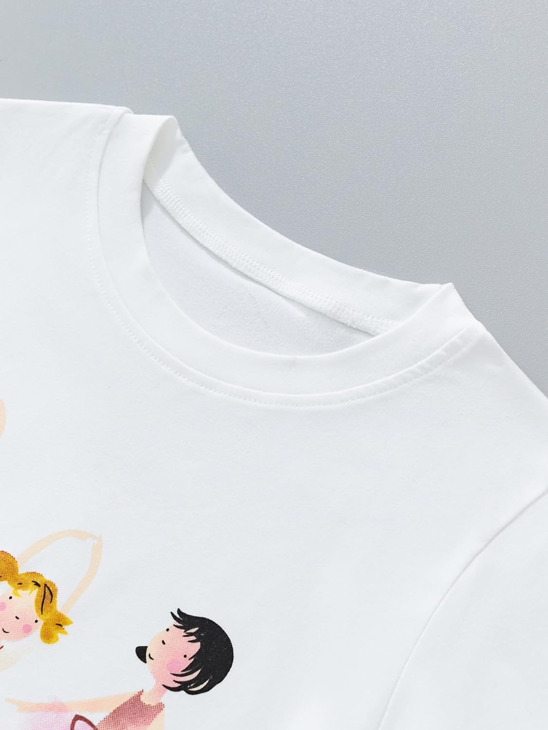Short Sleeve Cotton T-Shirt Tops and Shorts 2 Piece Cute Girls Dancer