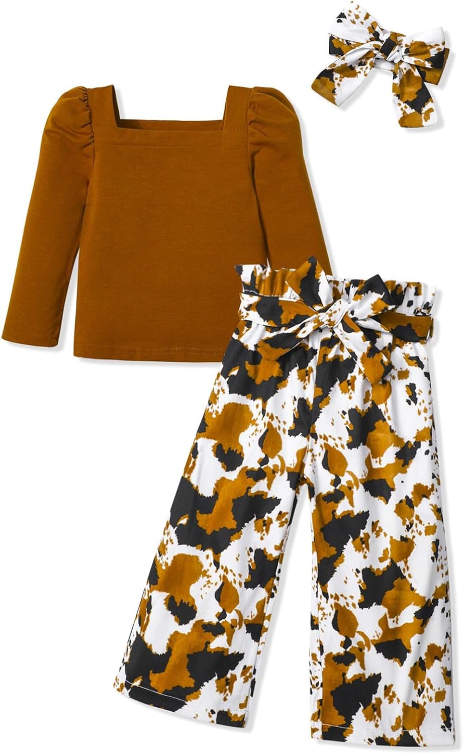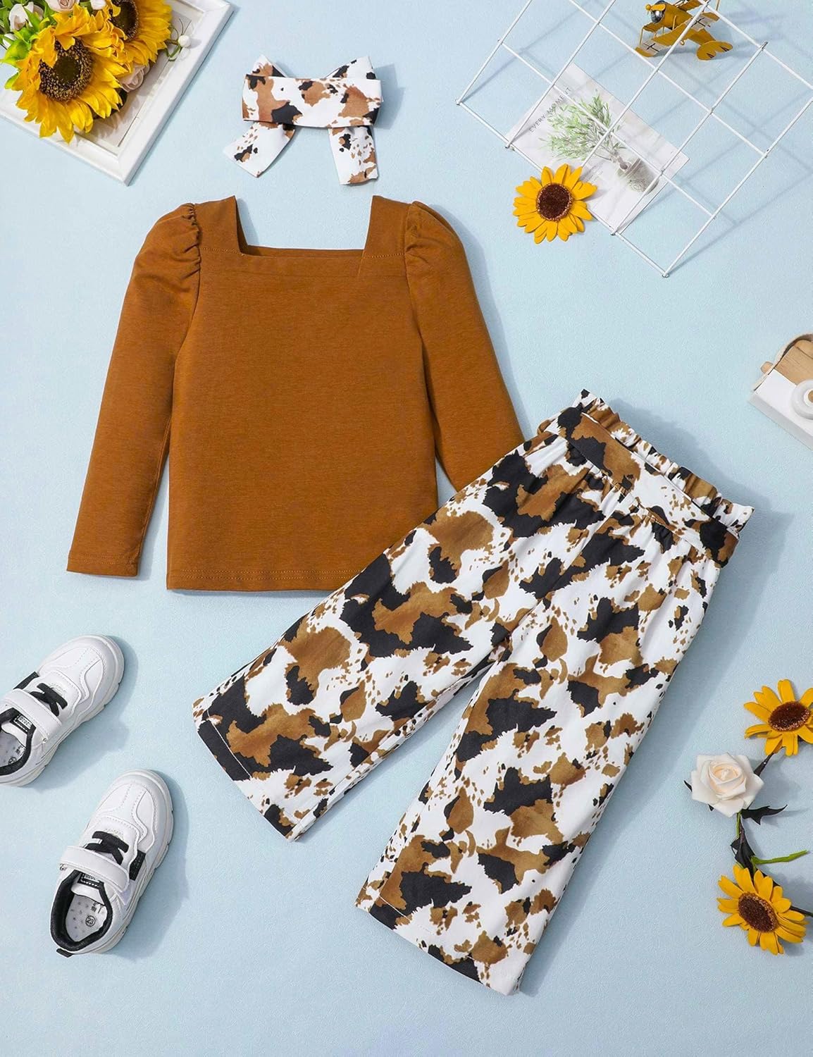 TCWWBB Girls Kids Outfits Clothes Set Toddler Cute Unicorn Bunny Bowknot Birthday Print long Sleeve Cotton Shirt jumper Dresses Tops Leggings Trousers Pants 2 Piece Clothing Set Age 1-7 Years Old