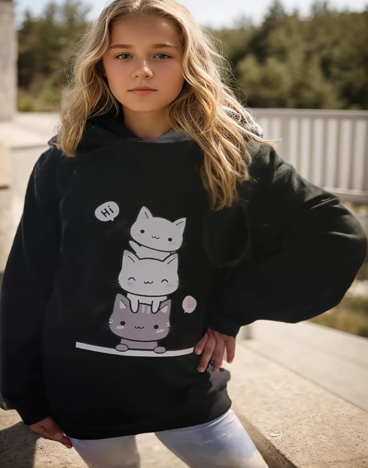 Xumplo Girls Long Sleeve Jumper Clothes Tween Girl Black Cat Sweatshirt Teen Girl Crew Neck Casual Pullover