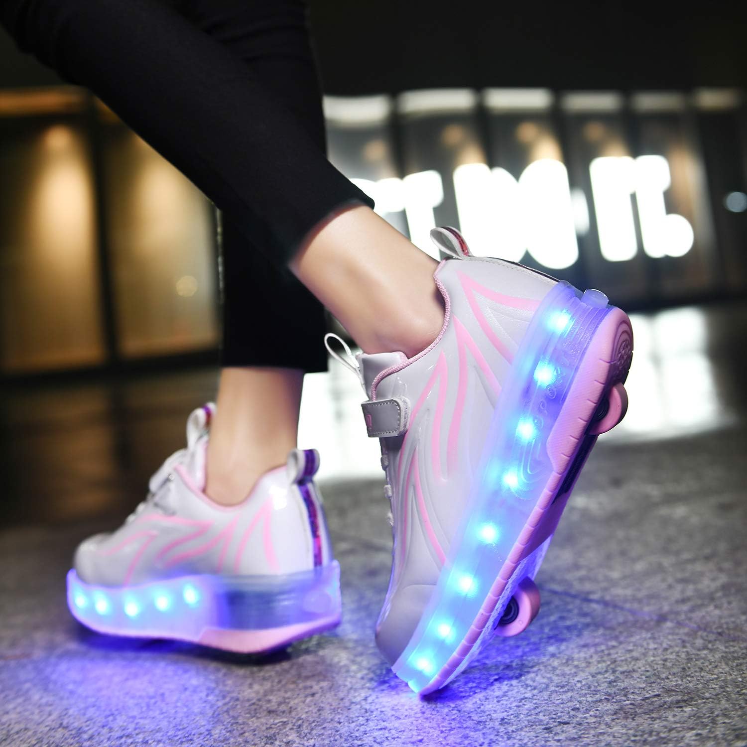 Boys and Girls LED Roller Skates Shoes with Double Wheels Trainers Technical Retractable Skateboarding Shoes for Kids Light up Shiny Luminous Sneakers Best Gift for Party Birthday Christmas Day