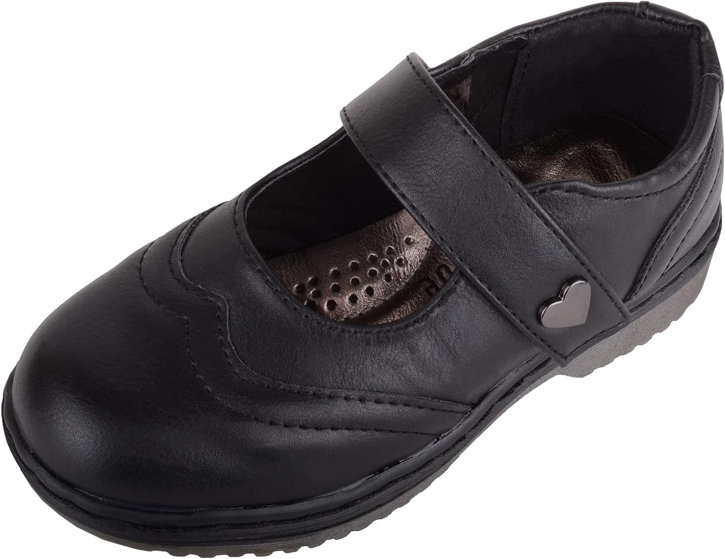 Childrens Kids Girls Slip On Faux Leather Smart Formal School Touch and Close Shoes