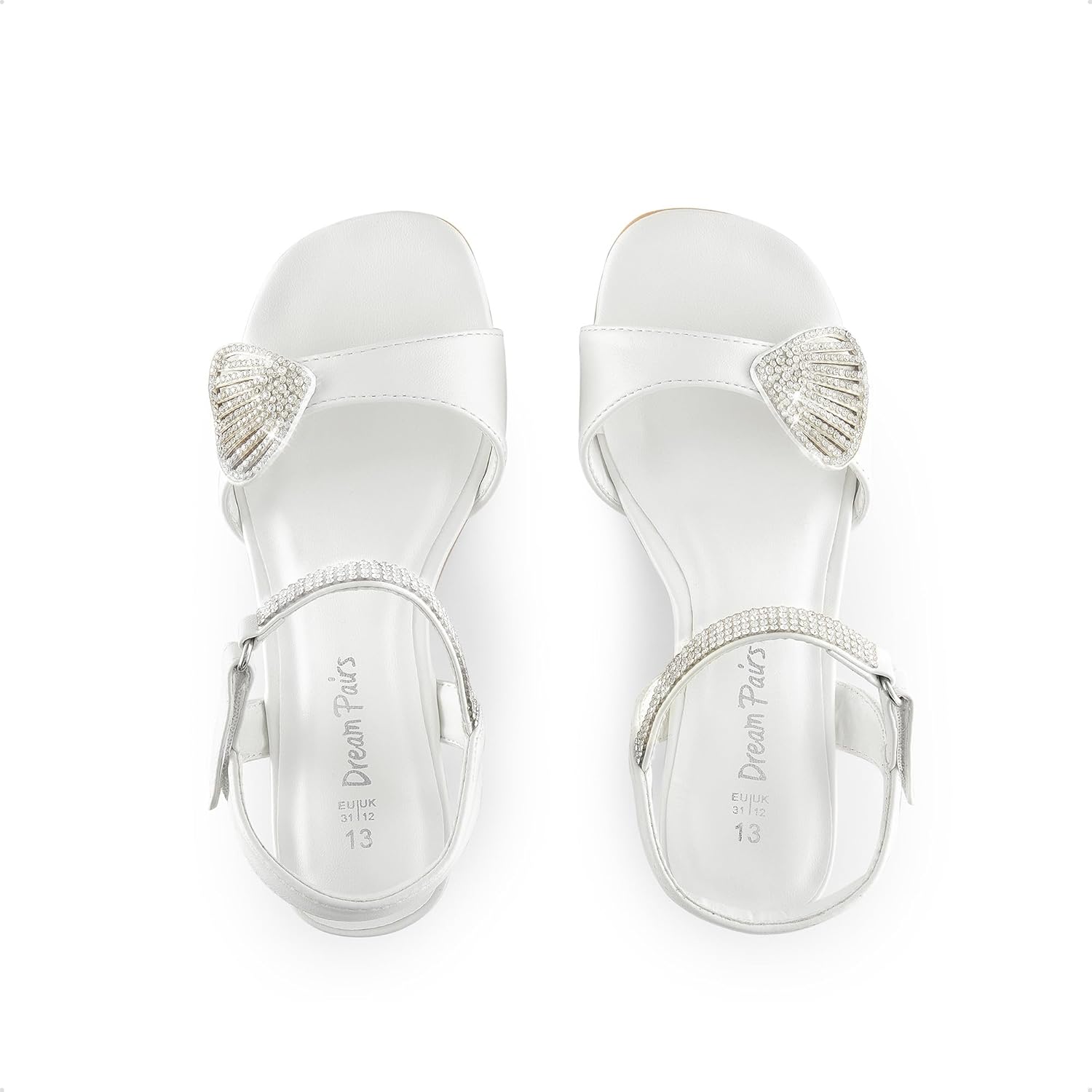DREAM PAIRS Girls Sandals Ankle Strap Square Toe Low Heel Crysta Shell Wedding Party Flower Dress Shoes