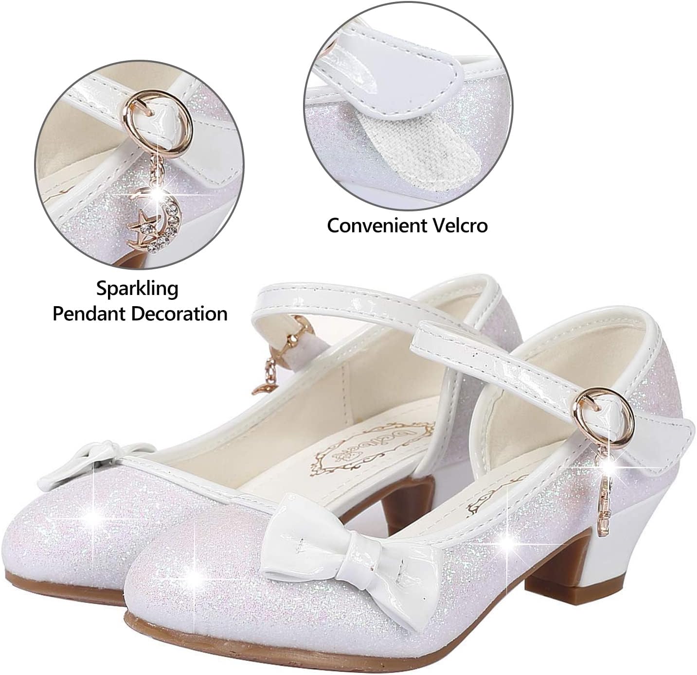 Girl Sandals Glitter Princess Shoes Sequin Party Shoes Bling Bowknot High Heels Wedding Birthday Dress Shoes Comfort Bright Diamond Cosplay Dance Shoes for Little Girls Pink Silver Blue Purple White