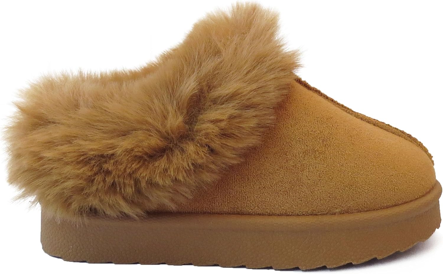 Keep your little one’s feet warm and stylish with these adorable kids’ girls’ slippers. Featuring a plush faux fur collar and lining, these slippers are perfect for cozy evenings and playful mornings. Crafted with a faux suede upper for a chic look.
