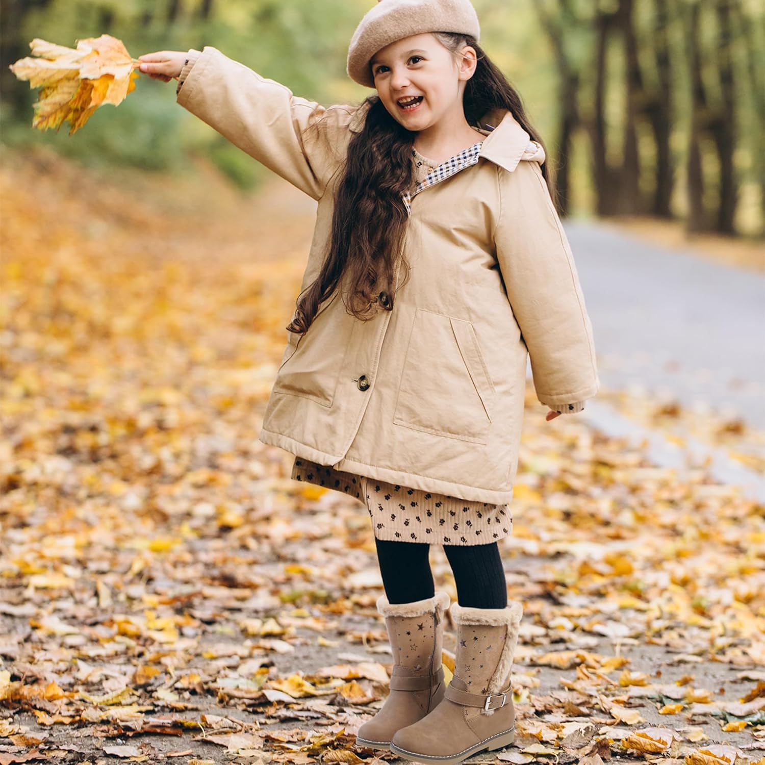 Harvest Land Girls Boots Kids Mid-Calf Boots Zipper School Shoes Big Kid Fashion Winter Boots Zip-up High-Top Flat Boots