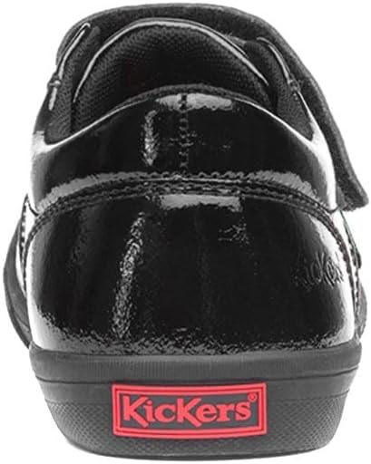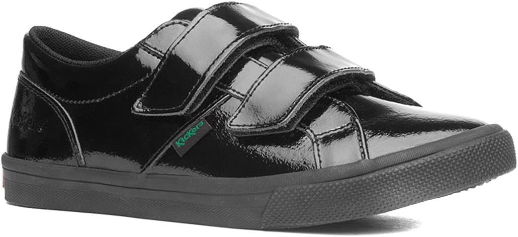 Designed by Kickers, these Kody kids’ school shoes feature a black leather patent upper and brand detailing. Their double easy fasten straps ensure an extra secure fit while their ridged outsole and midsole ensure a stable grip. These shoes are perfect for a long day at school! For up to 1 years old we would recommend infant size 3-4, 2 year olds a size 5-6, 3 year olds a size 7-8, 4 year olds a size 9-10, 5 year olds a size 10-11, 6 year olds a size 11-12, 7 year olds a size 12-13, 8 or 9 year olds a size 1-2 and 10-11 year olds a junior size 3-4.