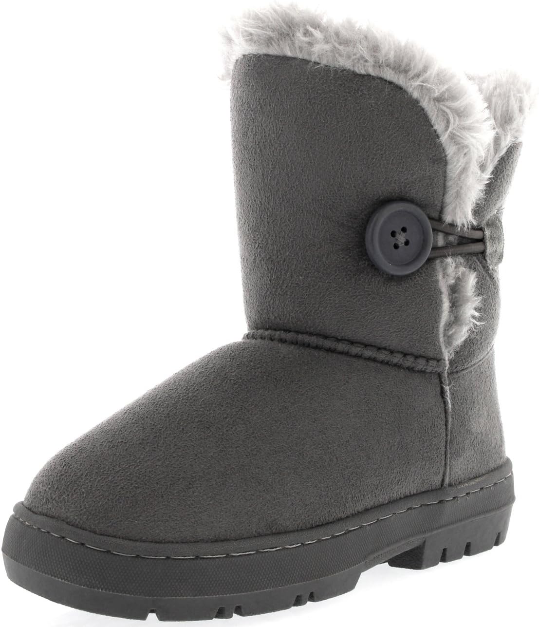 Kids Girls Button Winter Fur Lined Snow Rain Cosy Casual Warm Boots