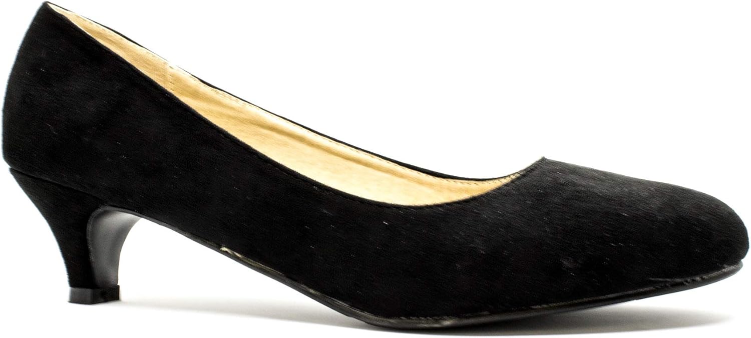 Ladies Womens Low Kitten Heel Work Court Evening Girls Shoes Pumps UK Big Sizes