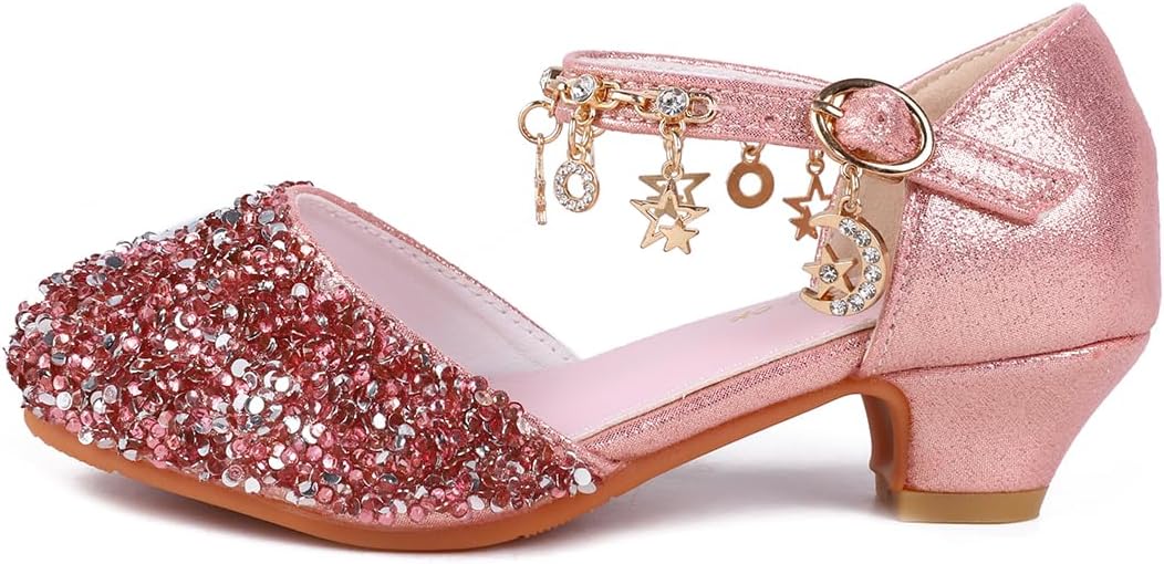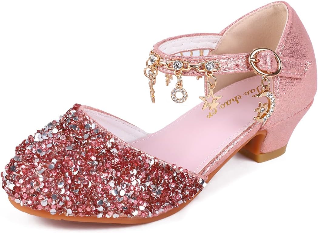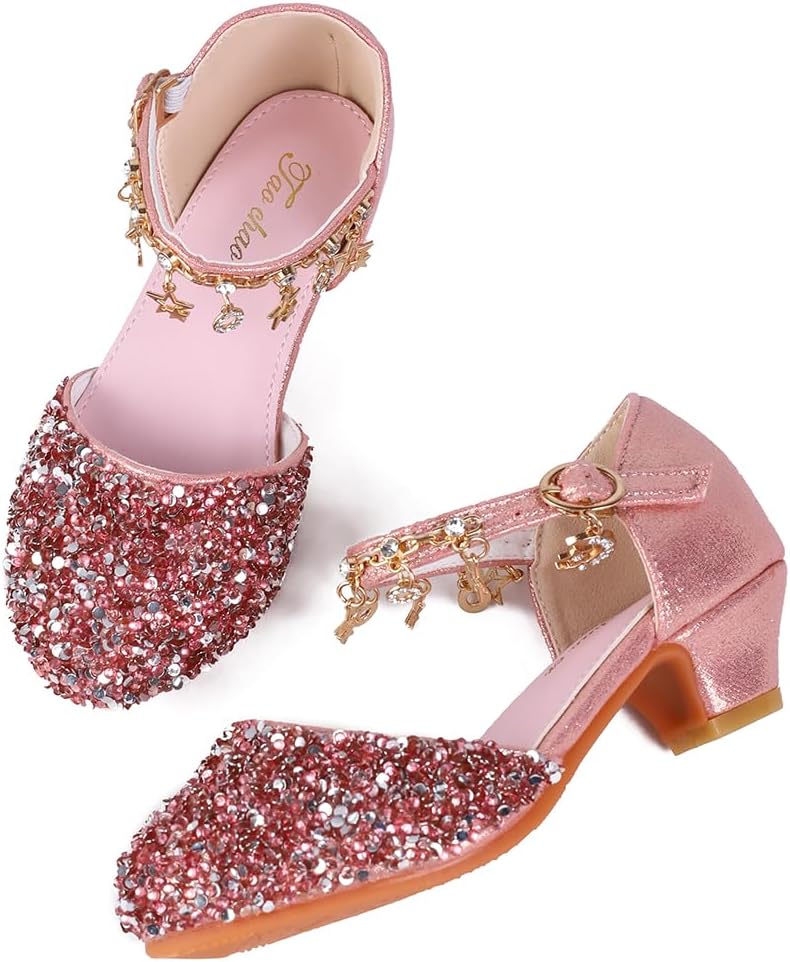 Lanivic Girls Princess Shoes Sequins Sweet Bows High Heels Wedding Party Dress Shoes Dance Bright Diamond Cosplay Christmas Festival Shoes Pink Blue Purple Gold Silver