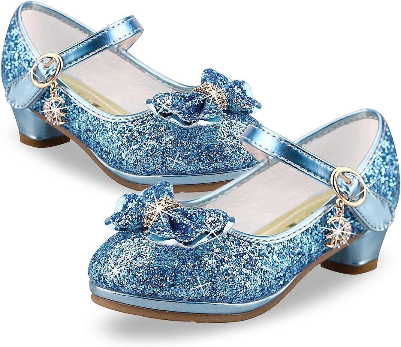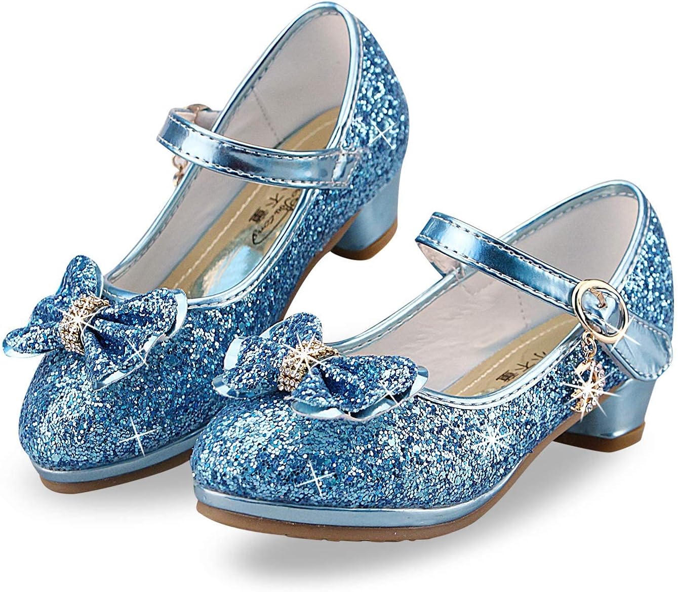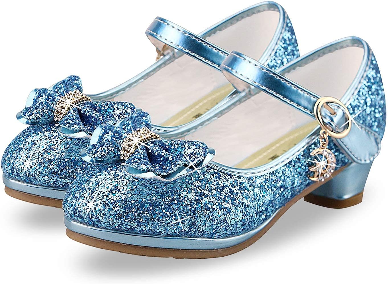 Lanivic Girls Princess Shoes Sequins Sweet Bows High Heels Wedding Party Dress Shoes Dance Bright Diamond Cosplay Christmas Festival Shoes Pink Blue Purple Gold Silver