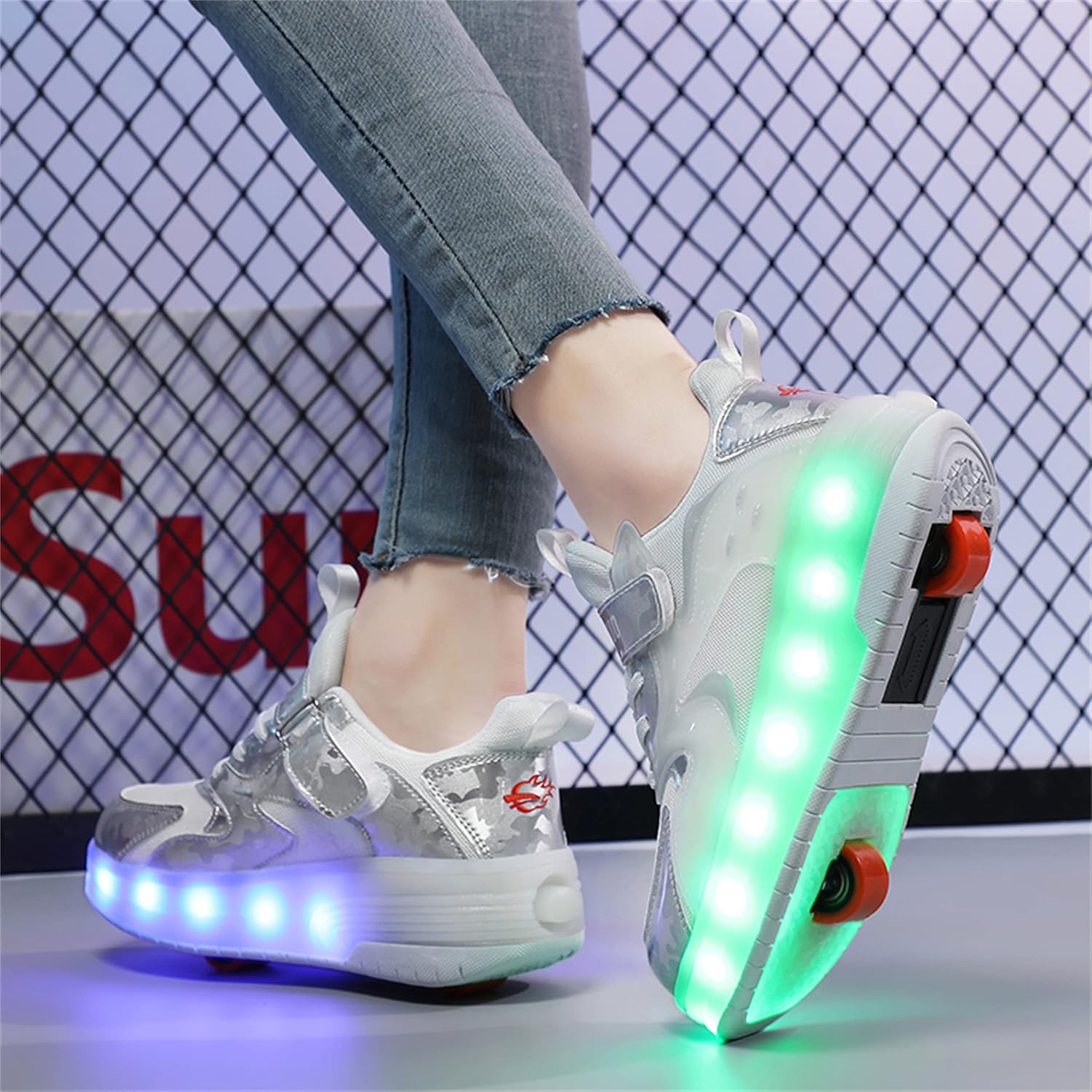 LED Light-Up Roller Skate Shoes with Retractable Wheels-Stylish Trainers for Boy, Girl, Kids, USB Rechargeable, Shiny Luminous Sneakers – Perfect for Party, Birthday, Christmas, Enhanced Safety