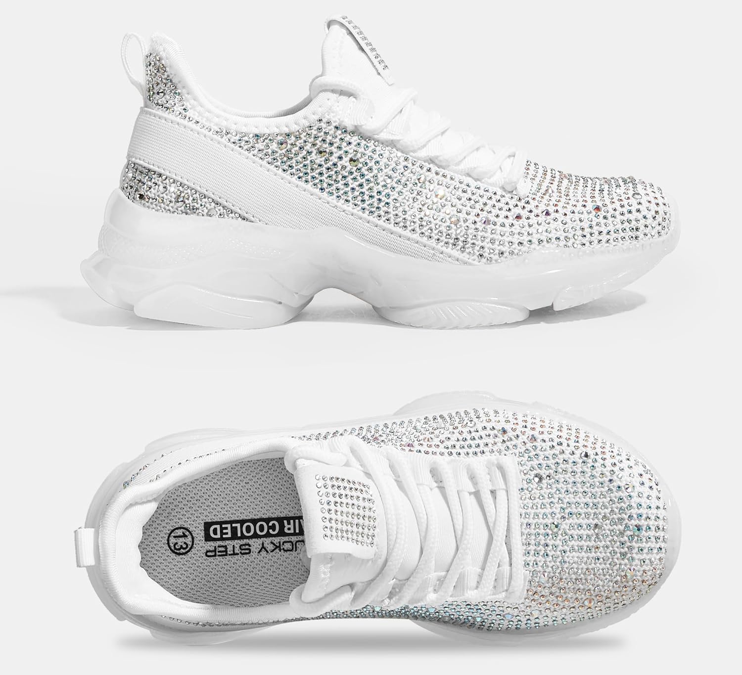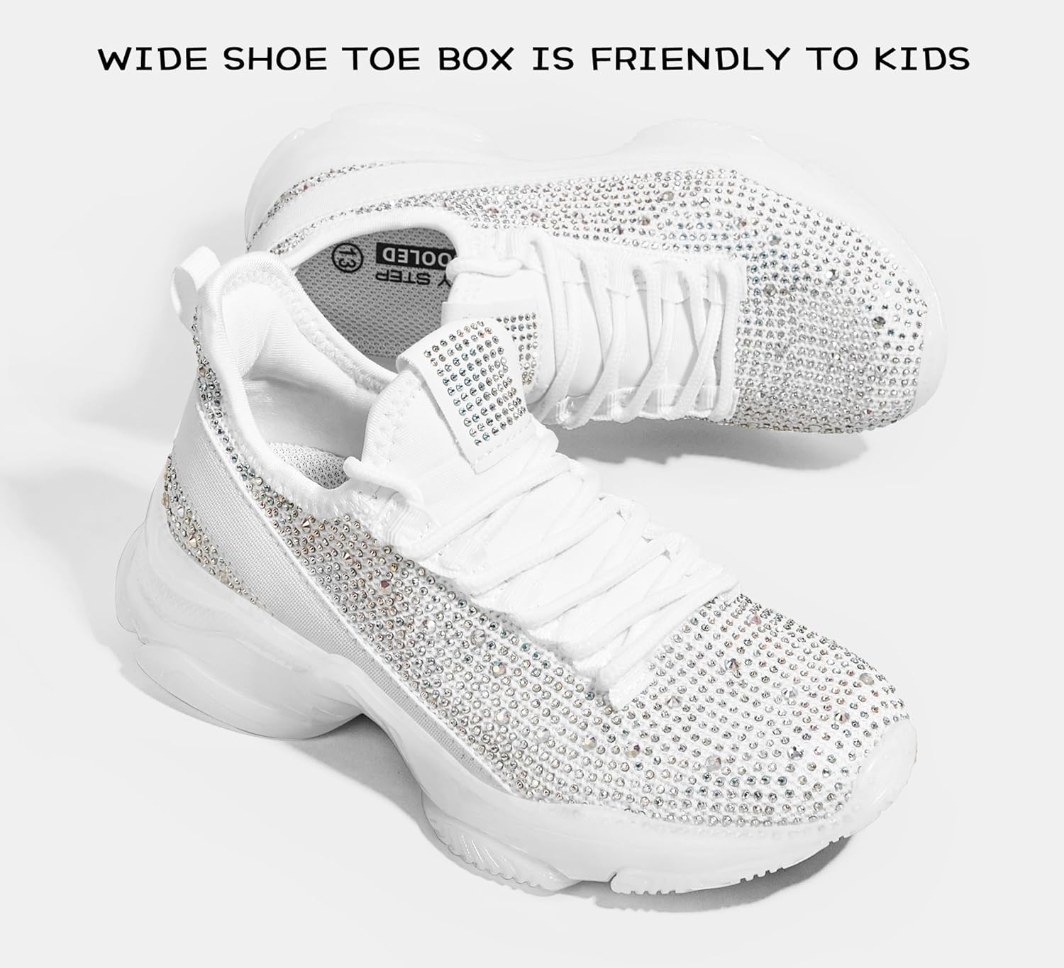 Lucky Step Girls Rhinestone Slip On Sneakers Kids Sparkly Lightweight Tennis School Knit Jelly Sole Glitter Walking Shoes Toddler