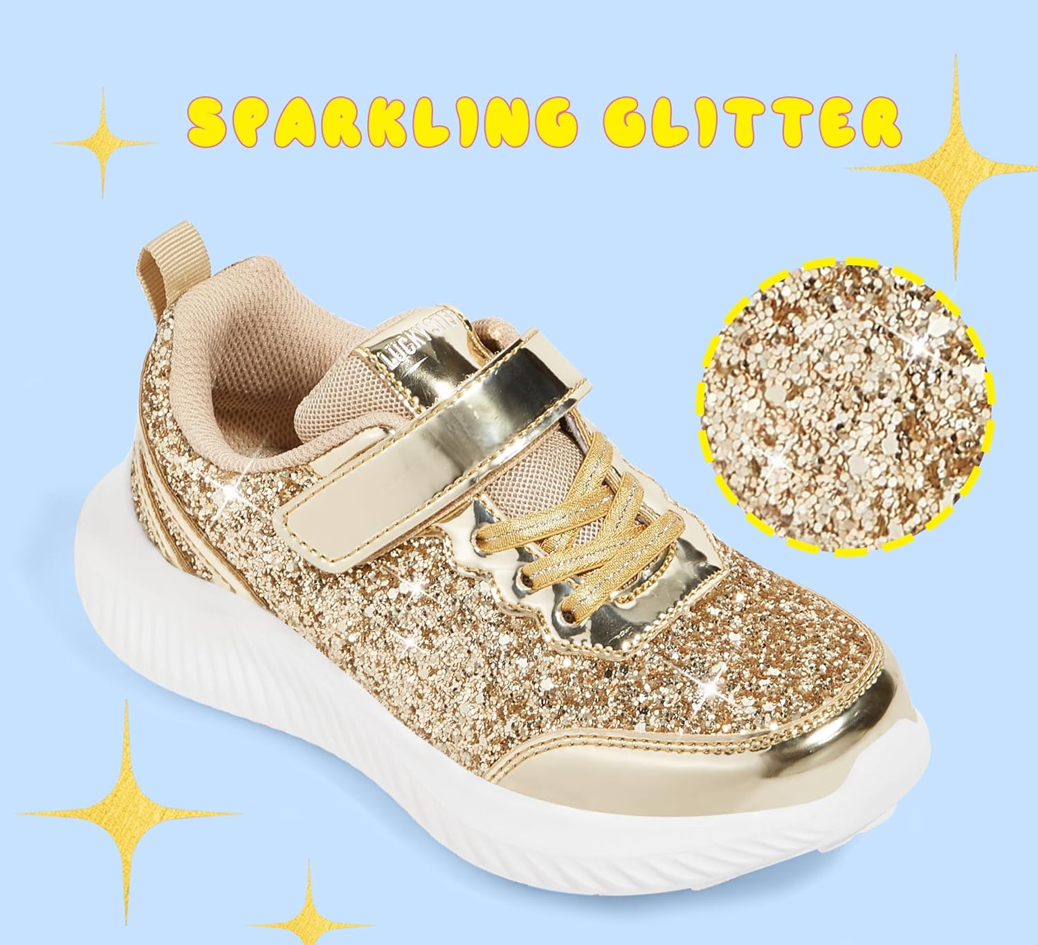 LUCKY STEP Kid’s Glitter Fashion Sneakers Sparkly Princess Tennis Bling Shiny Sequins Athletic Walking School Shoes for Children/Boys/Girls