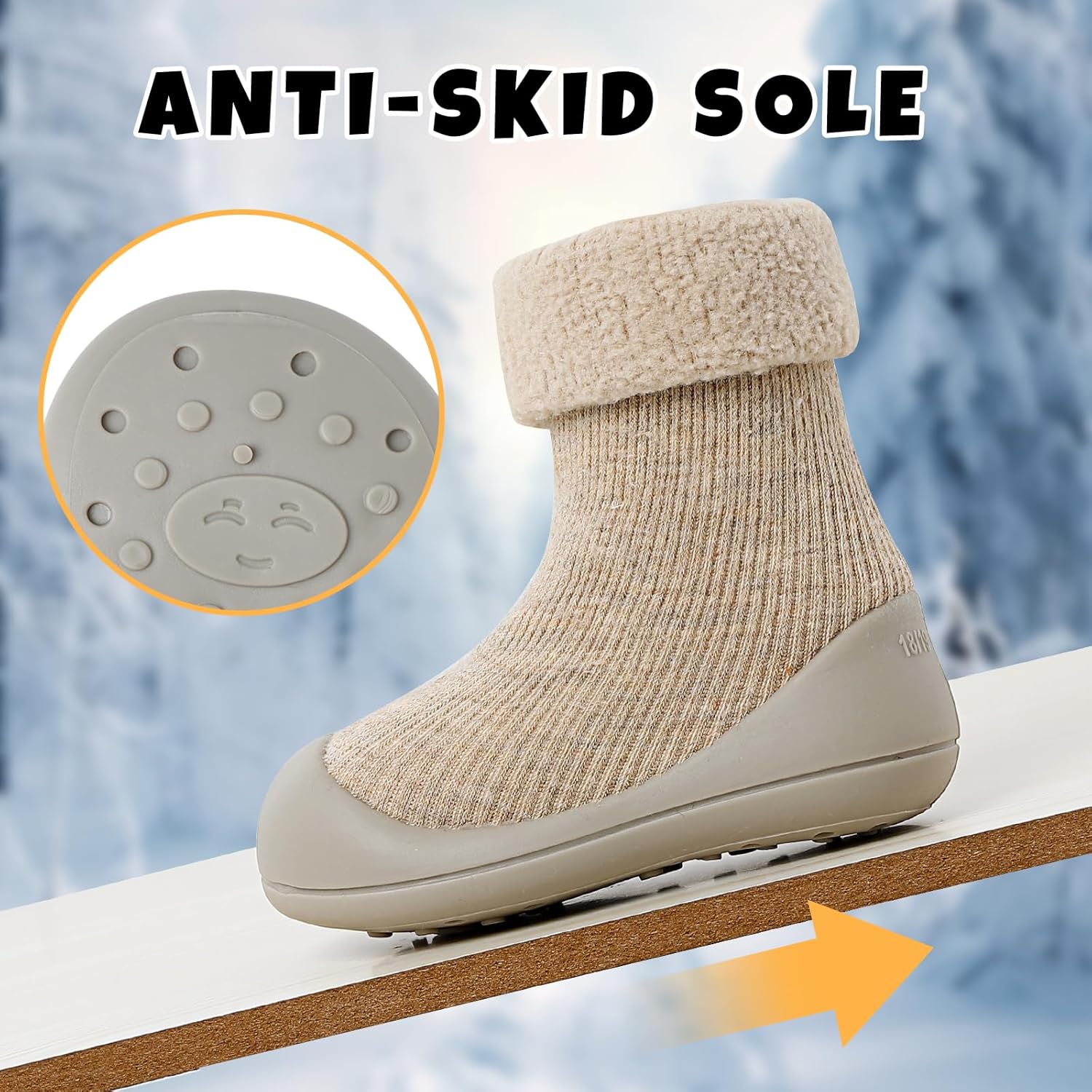 MK MATT KEELY Baby Shoes Boys Girls Winter Warm Sock Shoes Toddlers Thick Pre Walkers Shoes with Anti-Slip Rubber Sole
