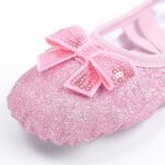 Shiny upper & Sparkly bowElastic cross bandBreathable liningQuality leather sole