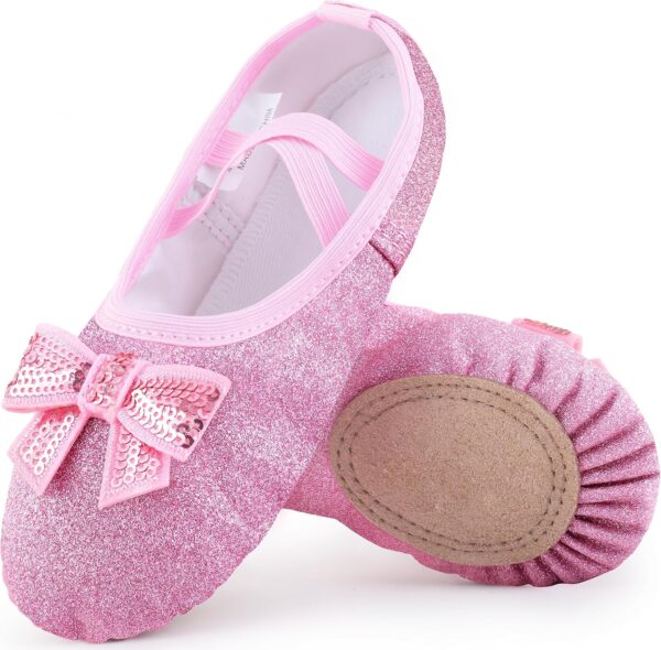 Mulnall Girls Ballet Leather Shoes Yoga Slippers for Dancing Practice Split-Sole No-Tie(Toddler/Little Kid/Big Kid)
