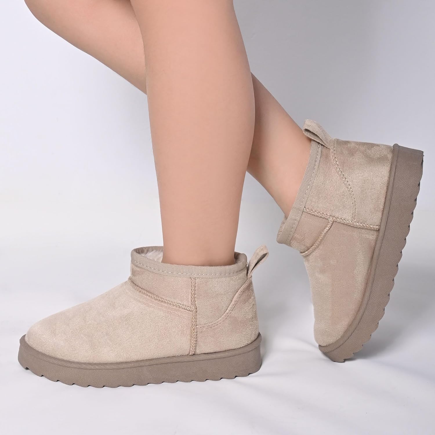 PMUEI Girls Kids Suede Winter Boots Kids Non-Slip Snow Boots Children Warm Faux Fur Outdoor Walking Boots Comfortable Boots For Girls