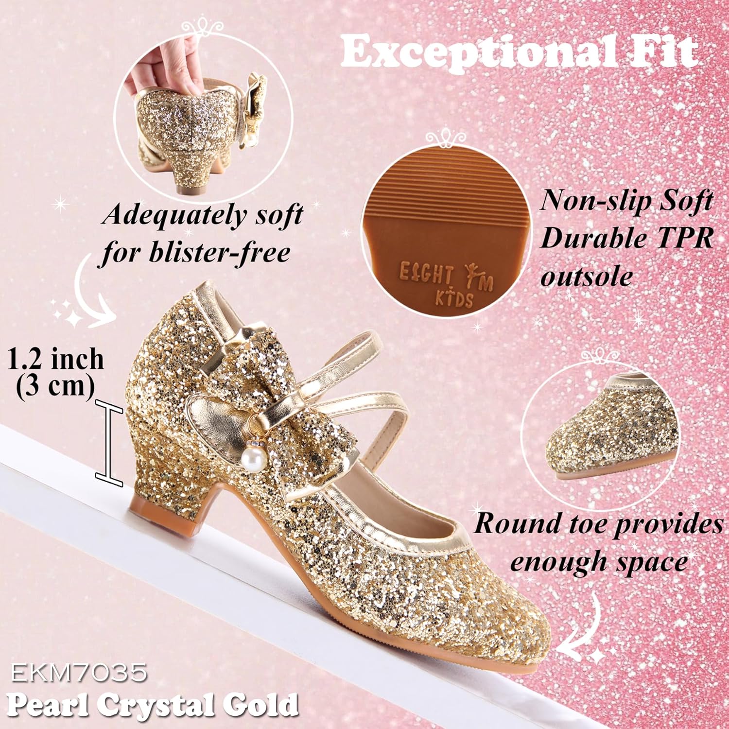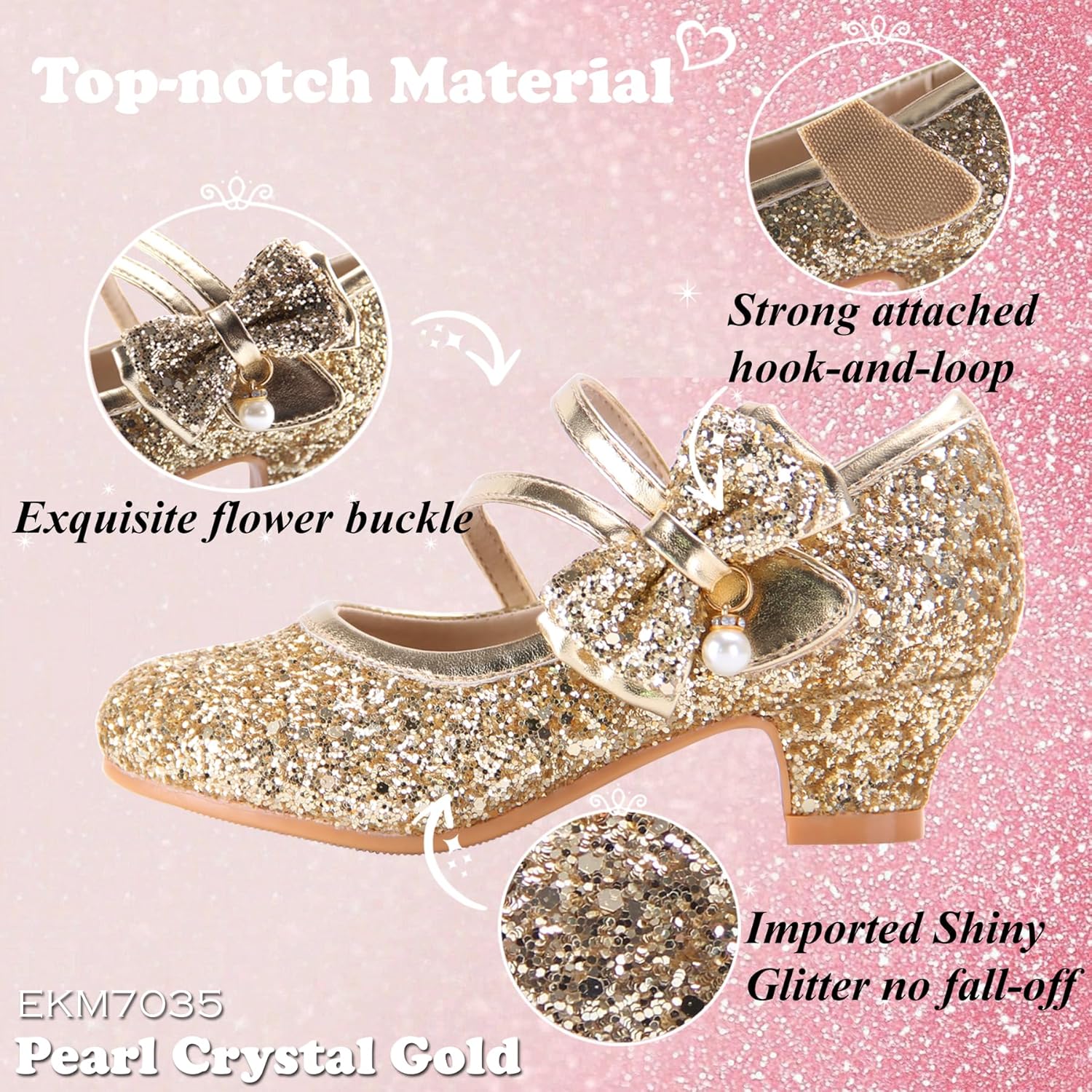 Princess Dress Up Shoes Girls’ Mary Jane Shoes – Girls Party Pumps – Flower Girl Wedding Party Girls Sparkly Shoes
