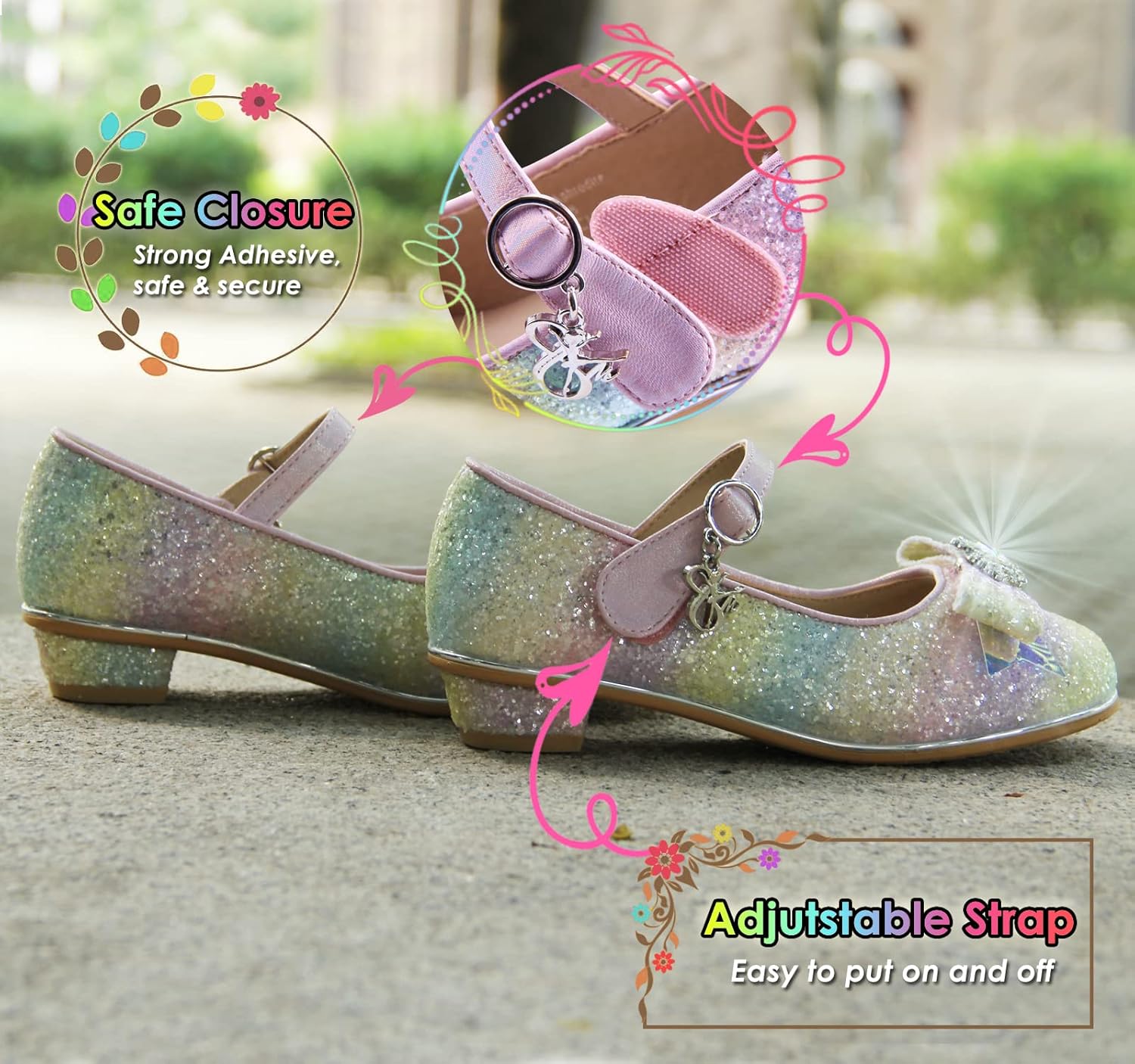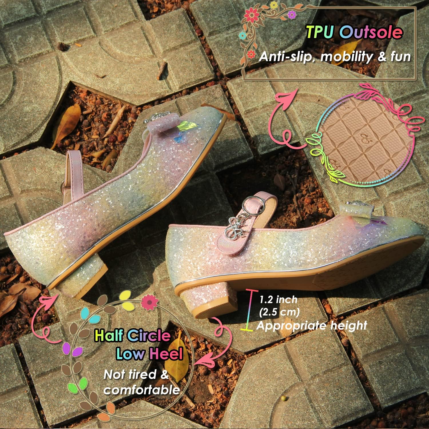 Princess Dress Up Shoes Girls’ Mary Jane Shoes – Girls Party Pumps – Flower Girl Wedding Party Girls Sparkly Shoes