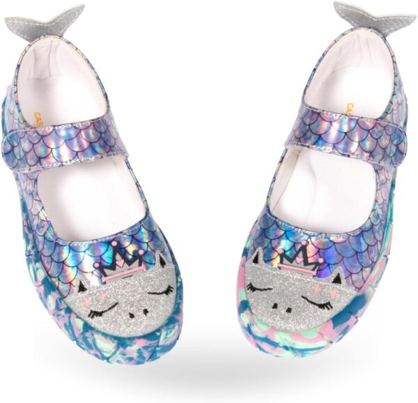 Casabony Princess Mermaid Ballerina Sneakers Step into a world of magic with the Casabony Princess Mermaid Ballerina Sneakers—a dream come true for little princesses! ✨ Features: Orthopedic Insole – Provides all-day comfort and support. Holographic Printed Upper – Shimmering mermaid scales for a dazzling effect. Handmade Bottom Sole – Carefully crafted for durability and flexibility. Embroidered Registered Design – Unique detailing with a sparkling tiara motif. Printed Holographic PVC Outsole – Ensures a firm grip with a touch of shine. Perfect for special occasions, playtime, or everyday adventures, these shoes are more than just footwear—they’re a magical companion!