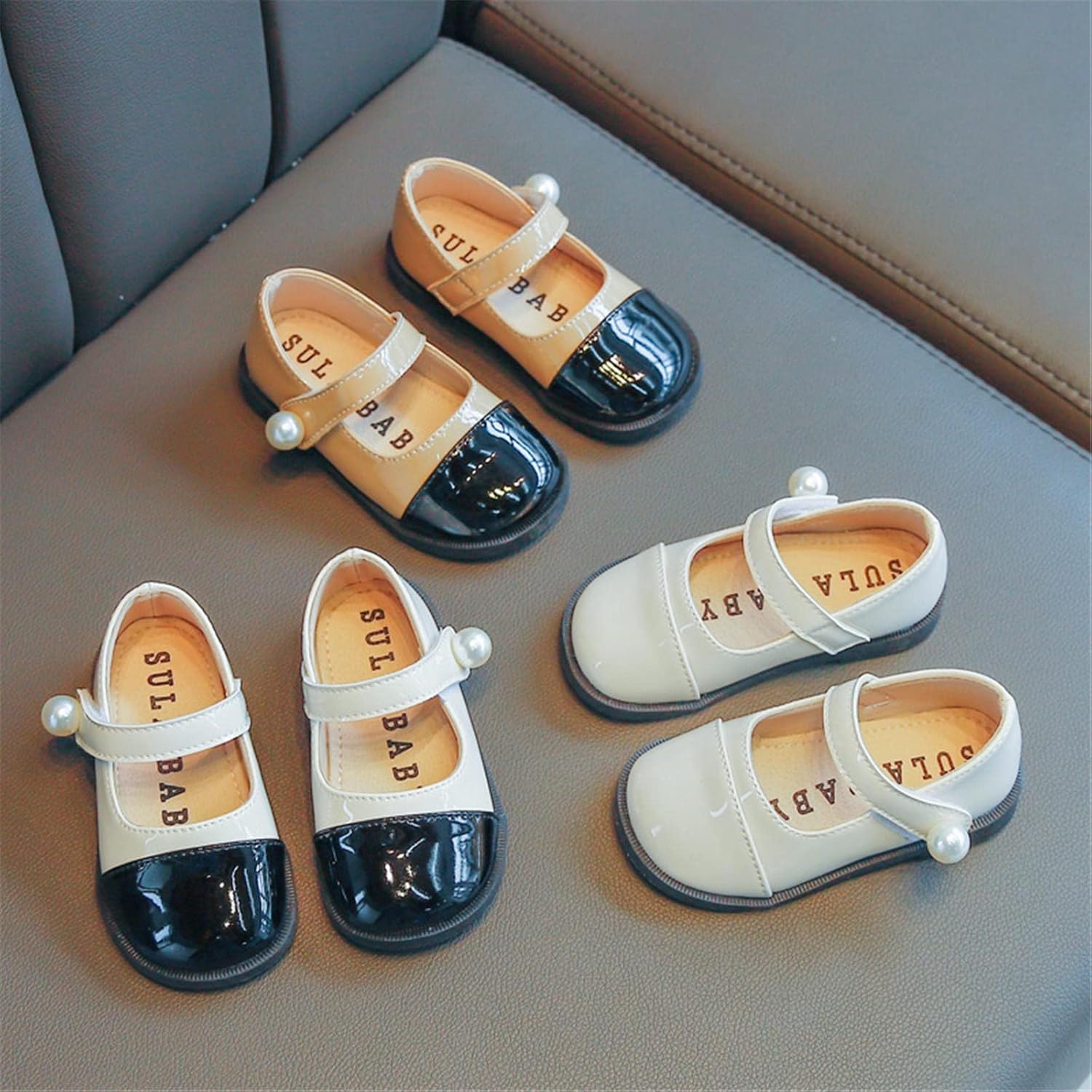 Slip On School Shoes for Girls Size 7 Girls Leather Pearl Design Soft Round Color Design Toe Princess Dress Flat Shoes(Toddler/Little Kid/Big Kids)
