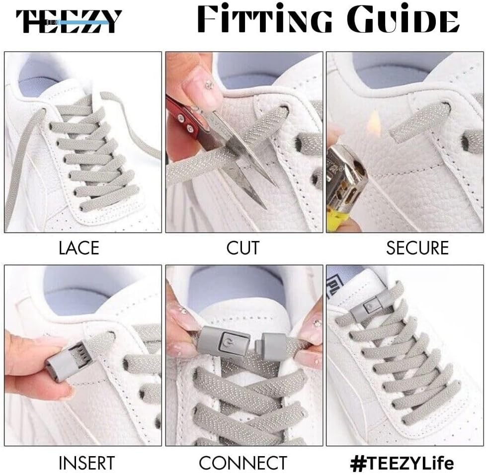 TEEZY No Tie Shoelaces are easy to use to install with our ‘fitting guide’ making them easy to use by people of all ages and abilities.