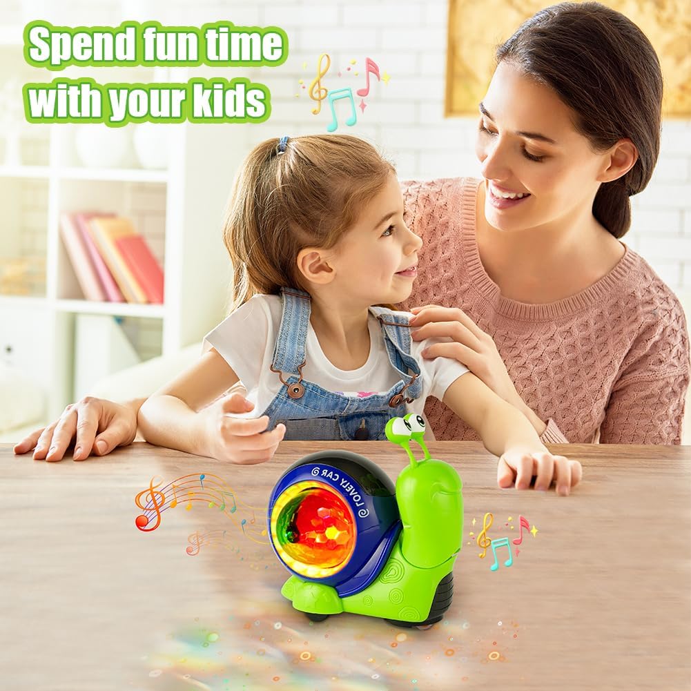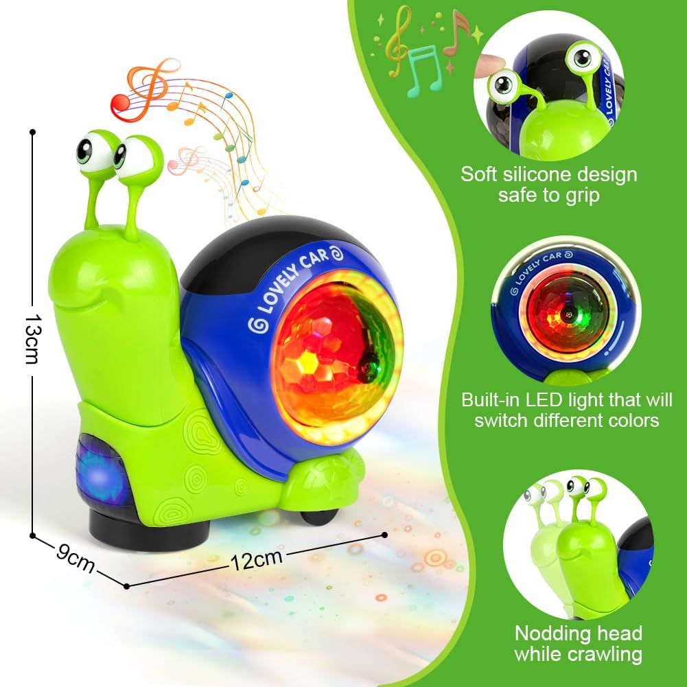 【Wonderful Lights and Music】The musical snail toys has a built-in music system, a rotating colorful LED luminous ball, and emits colorful lights when turned on. When it‘s turned on at night, it‘s accompanied by dynamic music, creating a fascinating light show.