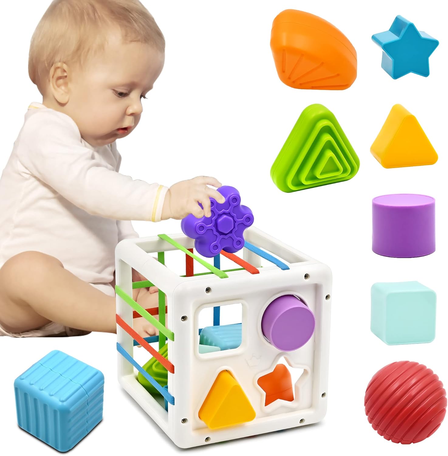 Baby Toys for 1 2 Year Old Boys Girls, Montessori Sensory Toys for 12 18 Months 1st Gifts Educational Learning Shape Sorter Activity Cube Travel Toys for Autism Toddlers Birthday Presents