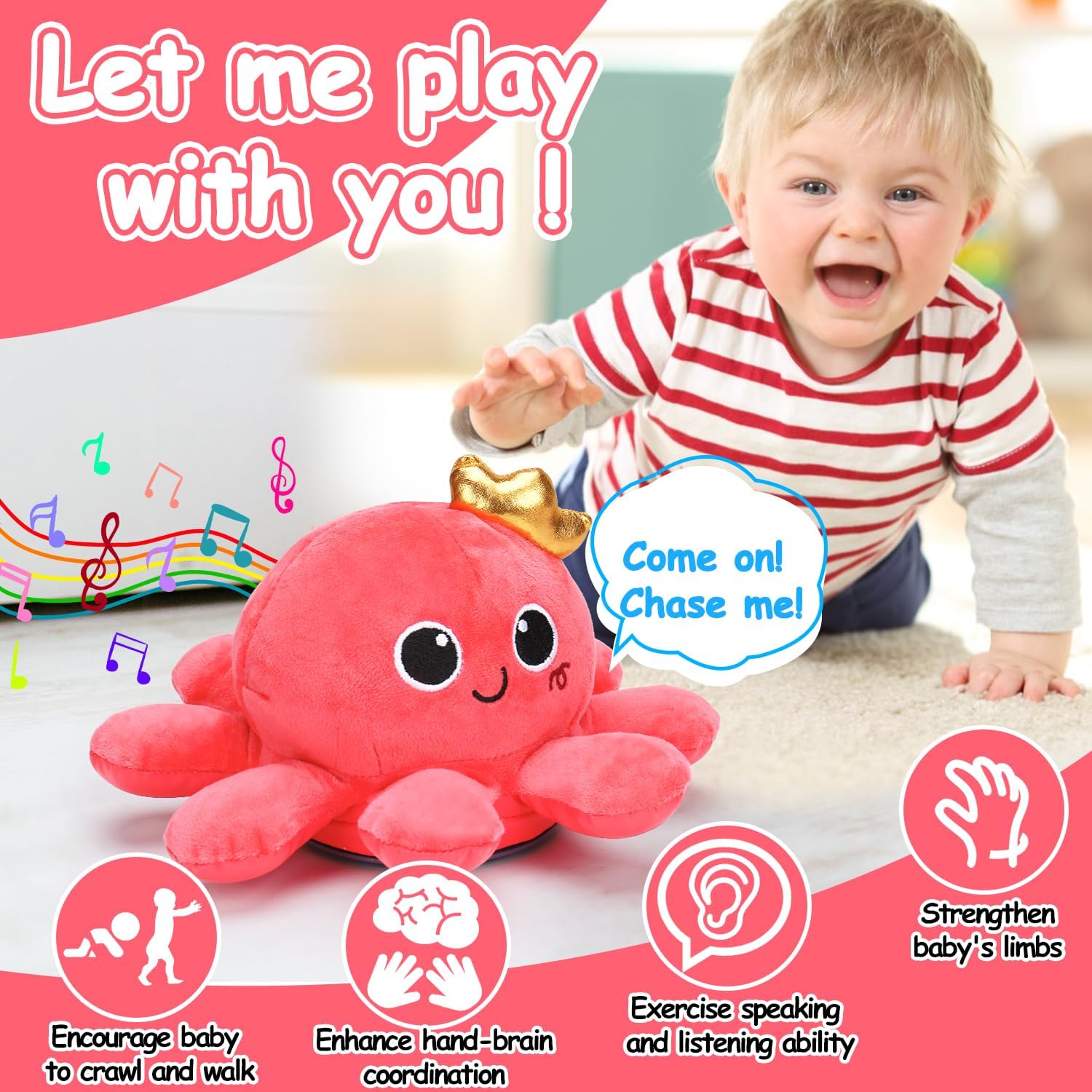 Lypsochaat Baby Toys 0 3 6 Months, Girl Pink Plush Musical Octopus Toy with Light & Music, Baby Crawling Walking Toys 0-6 6-12 Months, Baby Sensory Toy 1 2 3 Years Old