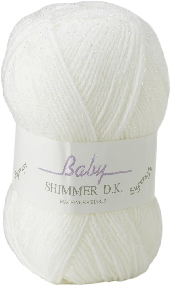 James Brett Baby Shimmer DK Knitting Yarn Soft Double Knit Wool 5 x 100g Balls (White – BS4)