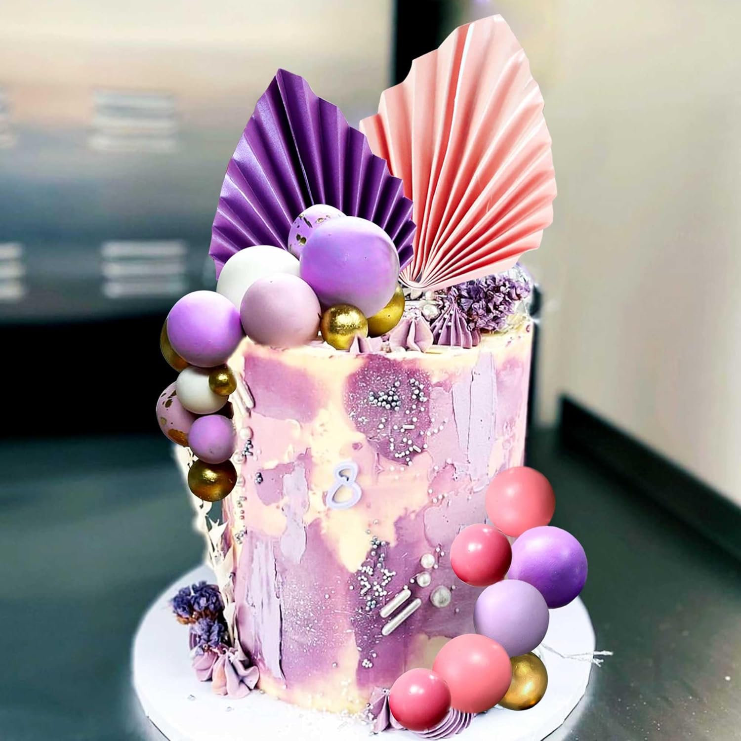 JeVenis 27PCS Purple Pink Cake Decorations Purple Pink Palm Leaves Cake Decoration Balls Cake Decoration for Wedding Baby Shower Birthday