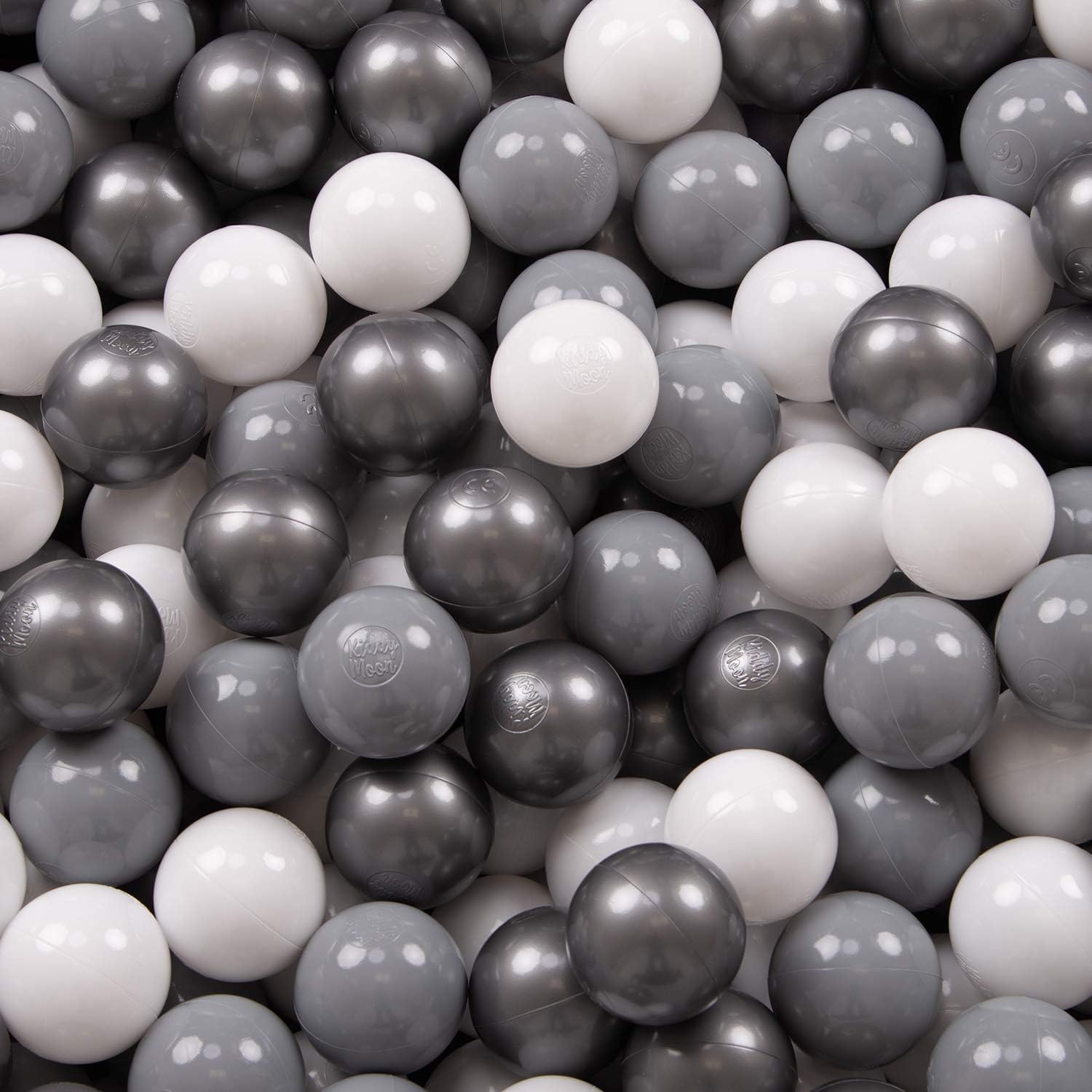 KiddyMoon Soft Plastic Play Balls 100 Balls/7Cm-2.75In Multi-Colour Made In EU, White/Grey/Silver