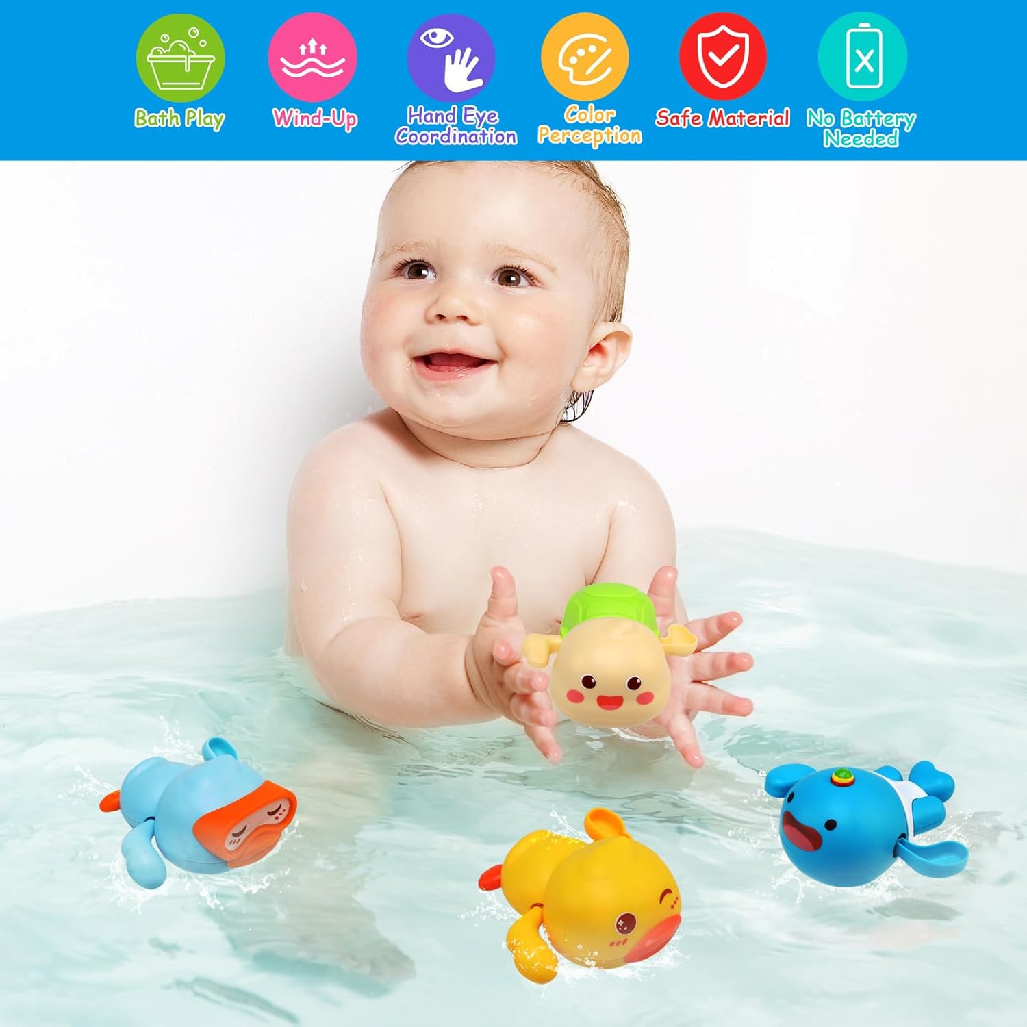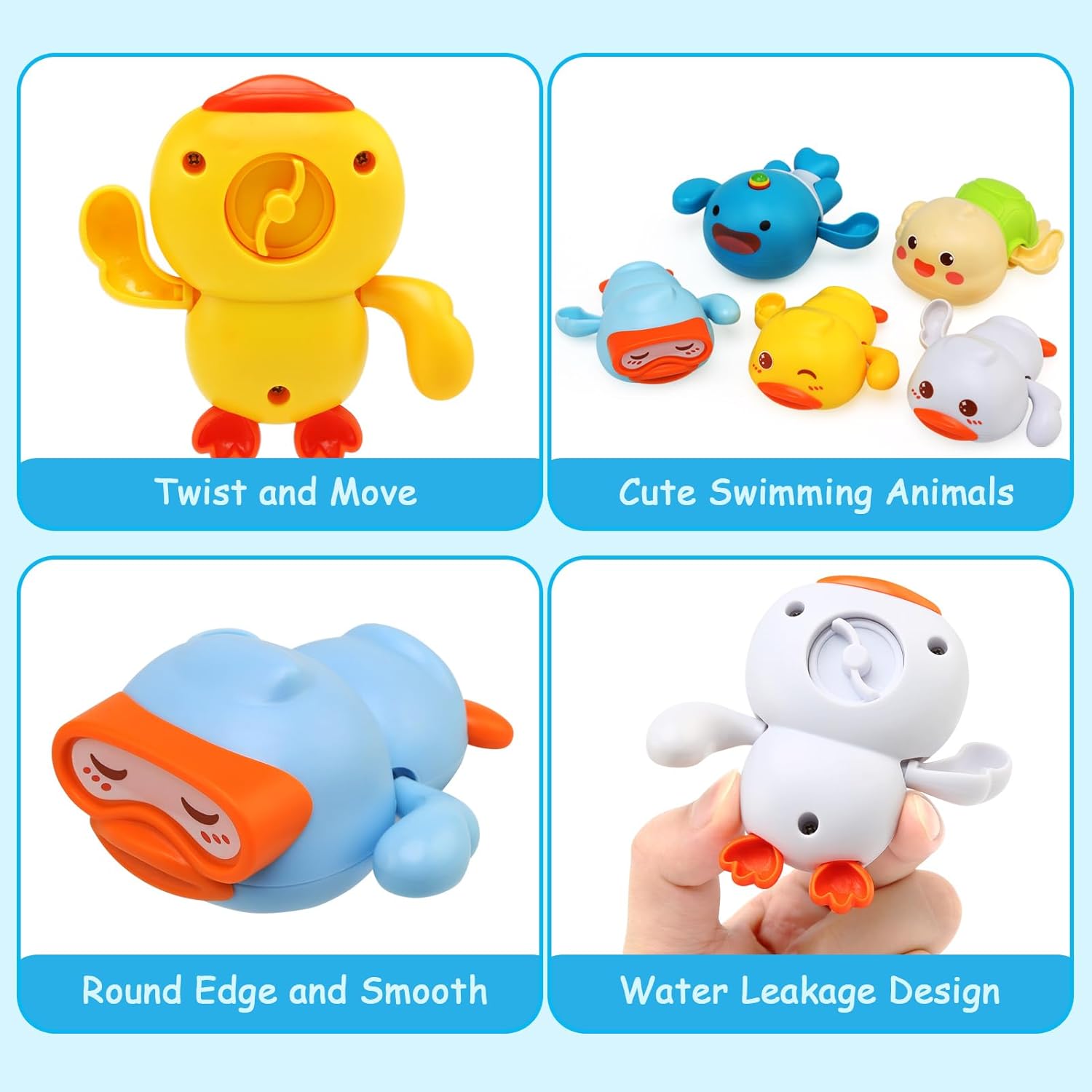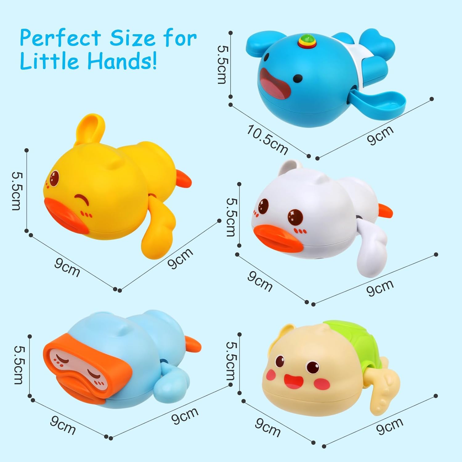 💦【5 Pack Baby Bath Toys Set】- These kids bath toys can swim through the bathtub once you clockwise rotate them and release in the water. Play with these wind-up bath toys, bring your child a perfect bath, and make your child interested in swimming.