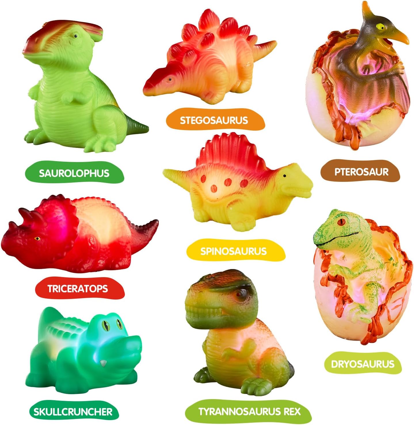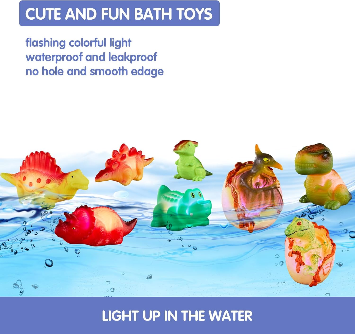 Dinosaur Toy Bath Floating Toy with Auto Flashing Early Learning Toy Dinosaur Theme Model 8 Pcs Bathtub Shower Toy Gift for Kids and Pets