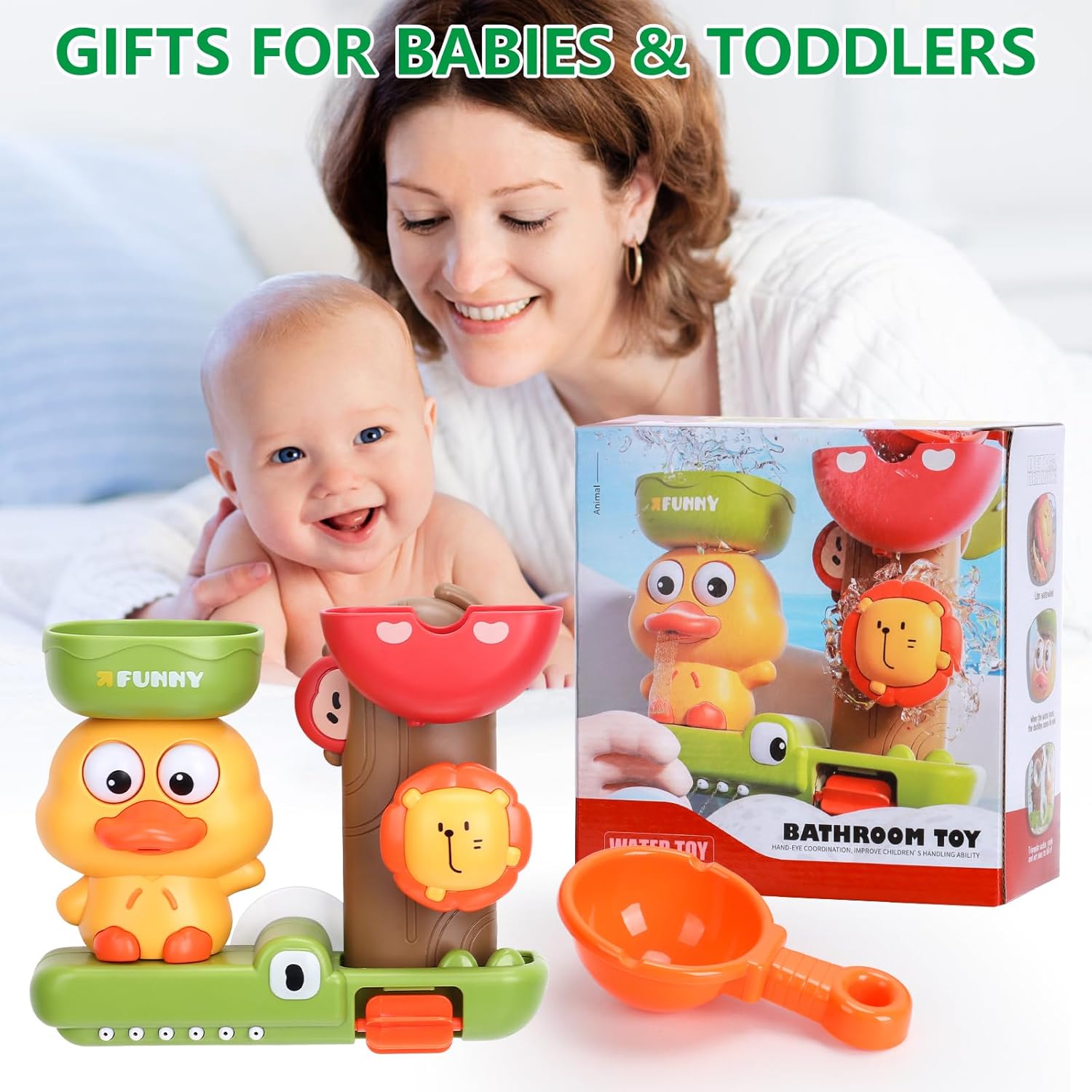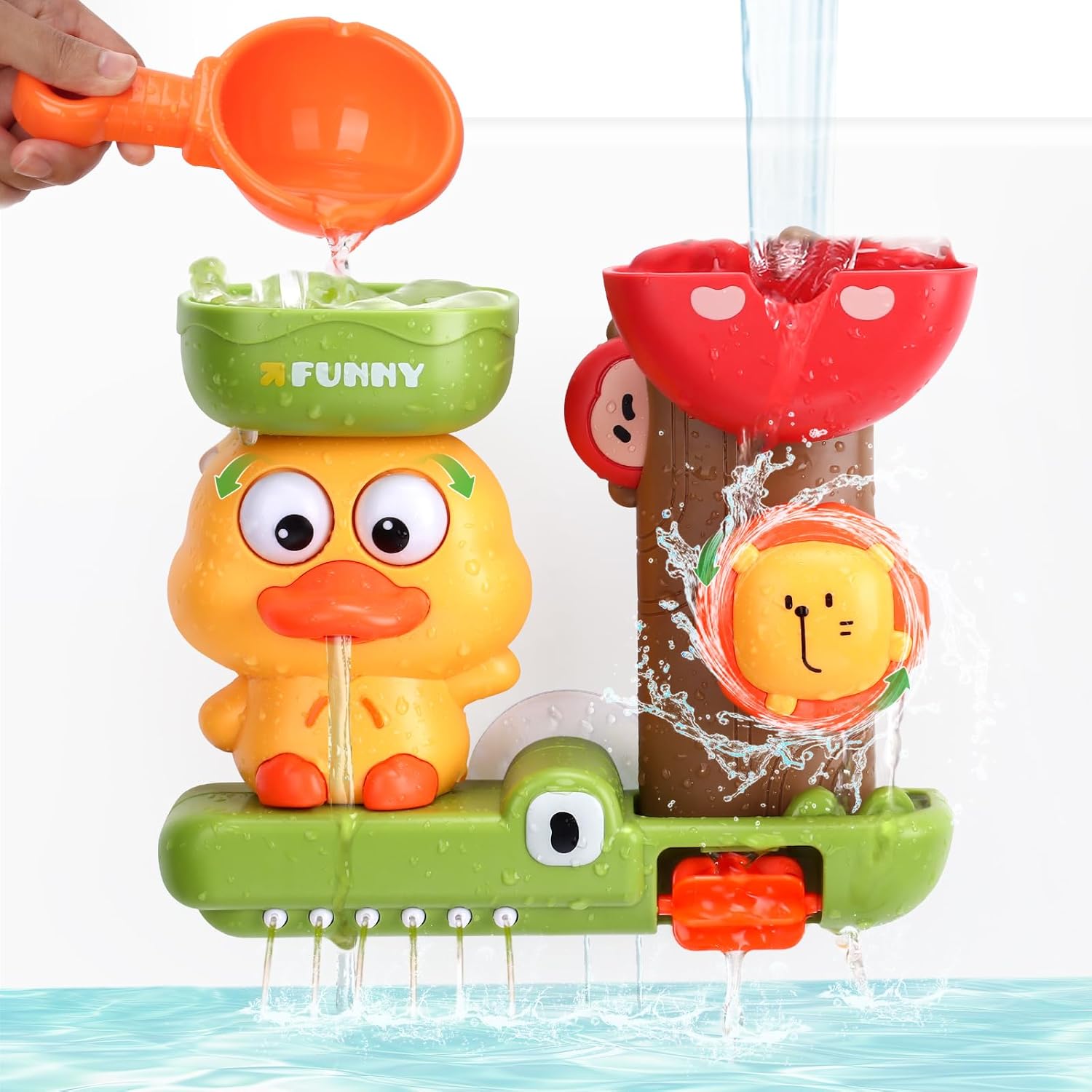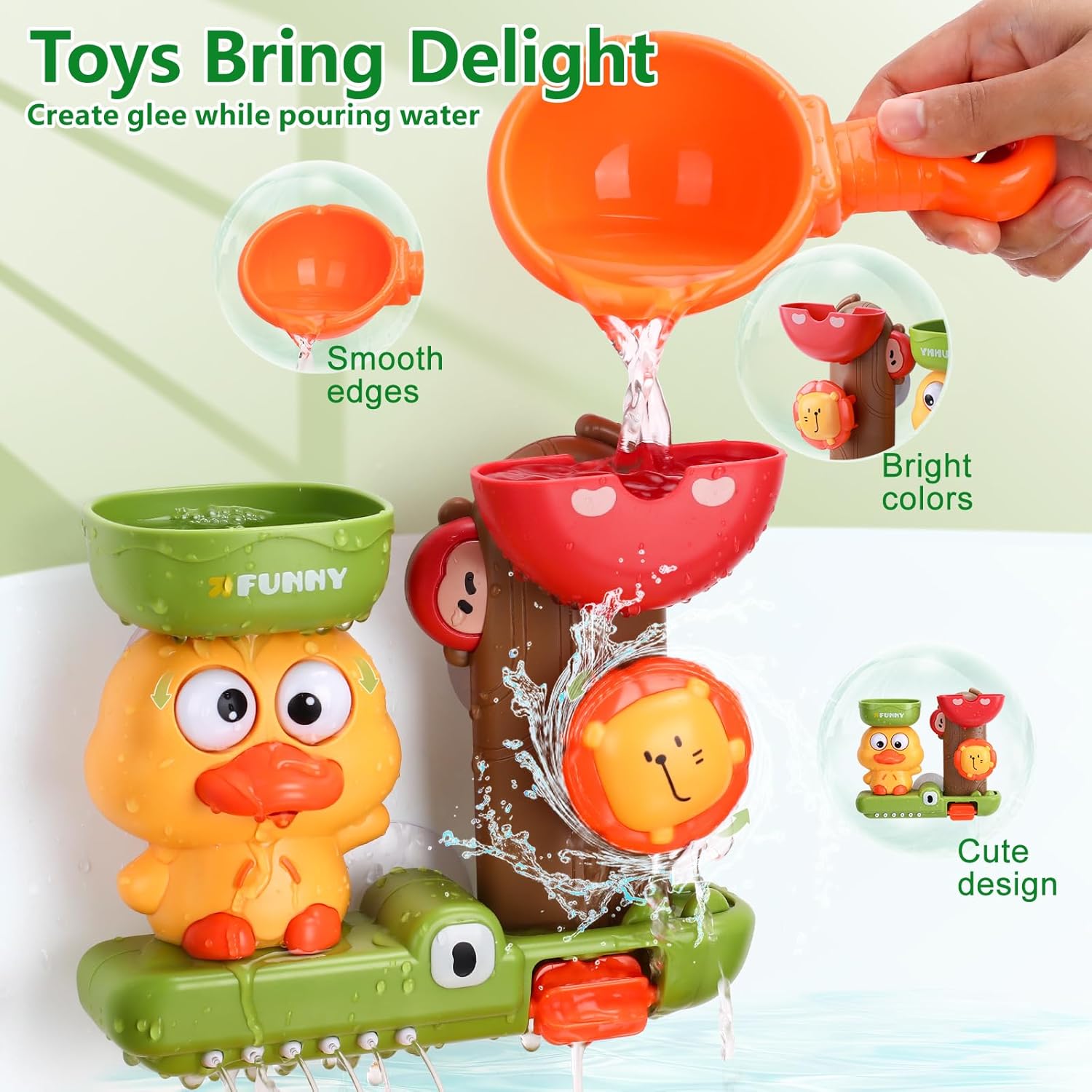 🛁【Interactive Water Play】 This bath toys for 1 2 3 4 year old features a squirting duck and spinning lion. Cute baby bath toys 6 to 12 months, it will creates endless fun!