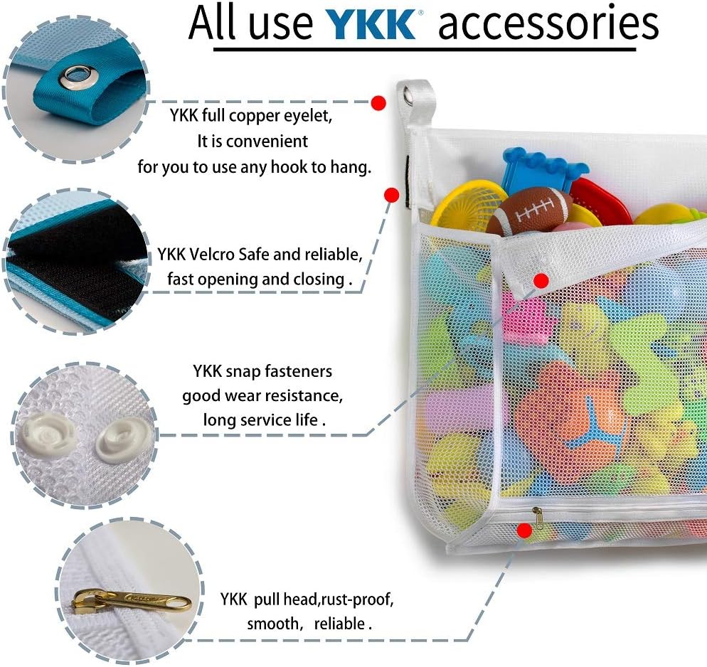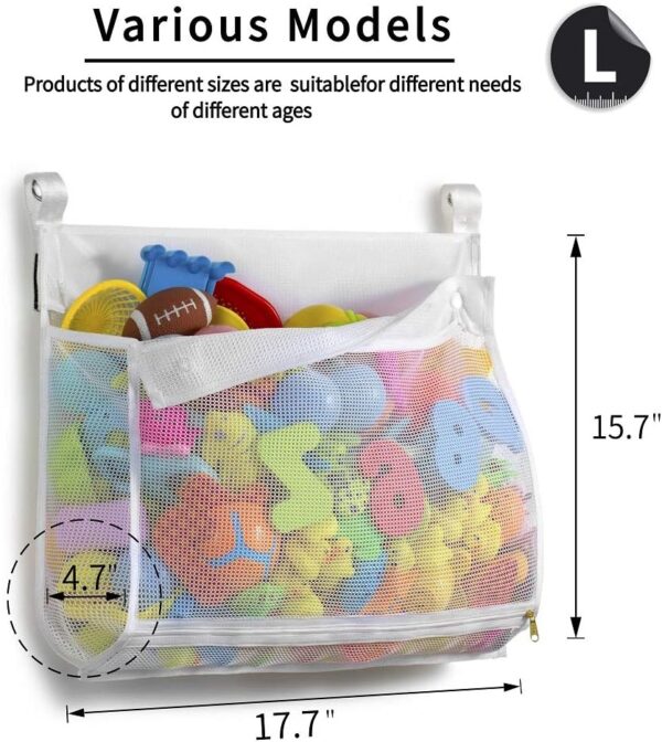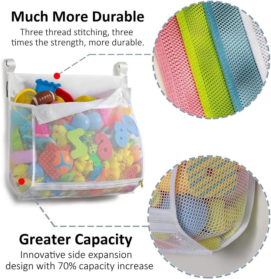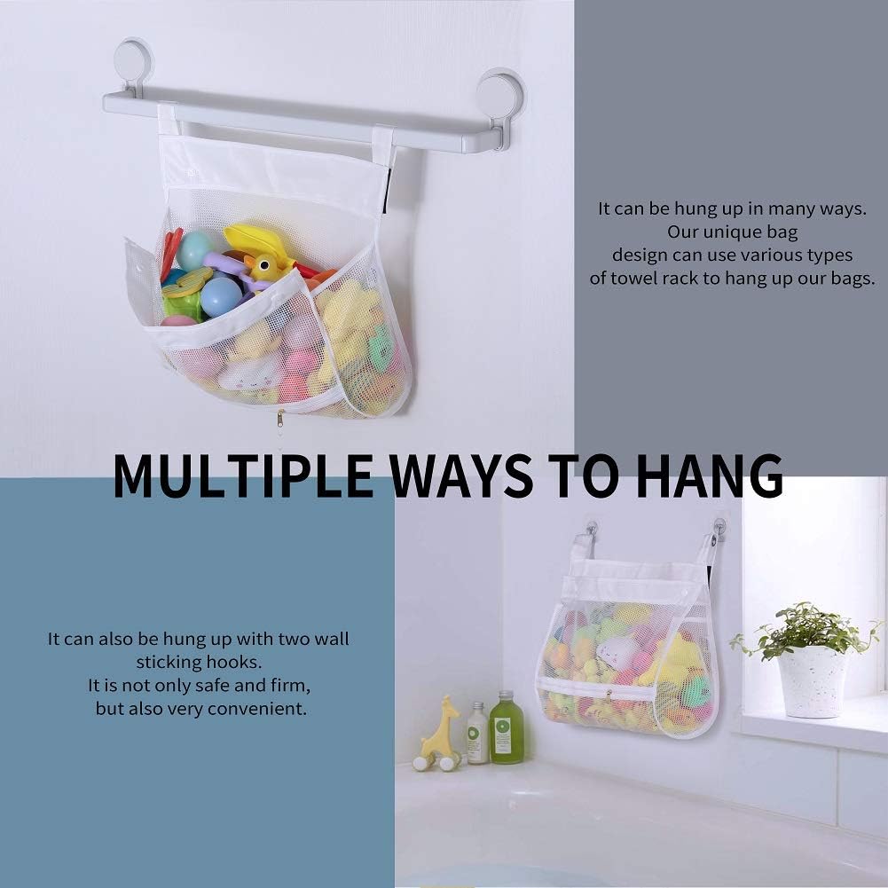 Strong and Easy to Clean – Our strong bath toy organizer are made from stainless, stretch and tear resistant material –100% polyester. The outer edges of the bag are fully sewed for 3 times strength suture. easy to quickly clean and dry.