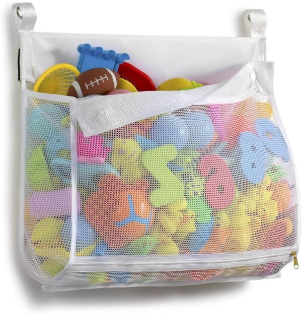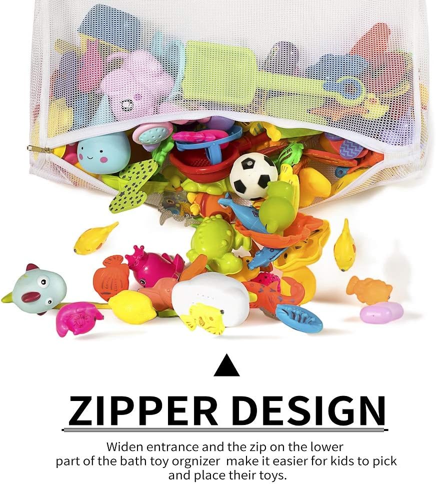 Tenrai Clever Zippered Mesh Bath Toy Organizer, Multiple Ways to Hang, Extra Large Opening Bathroom Toy Holder, Large Capacity Multi Use Bathtub Toy Storage Bag(1 Large, White)