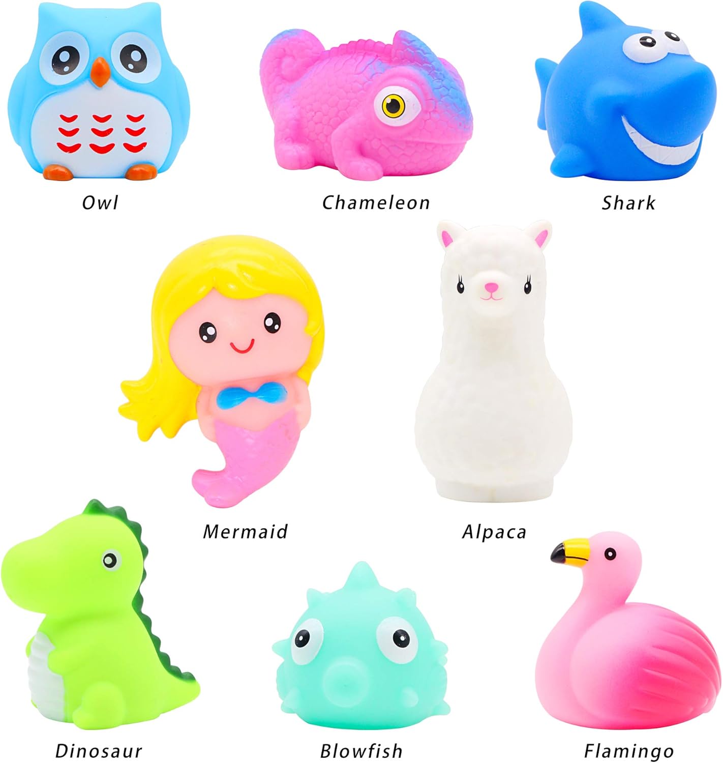 yoliyogo Animal Toy Bath Floating Toy with Auto Flashing Early Learning Toy Package with 8 Pcs Dinosaur Shark Flamingo Mermaid Bathtub Shower Toy Gift for Kids and Pets