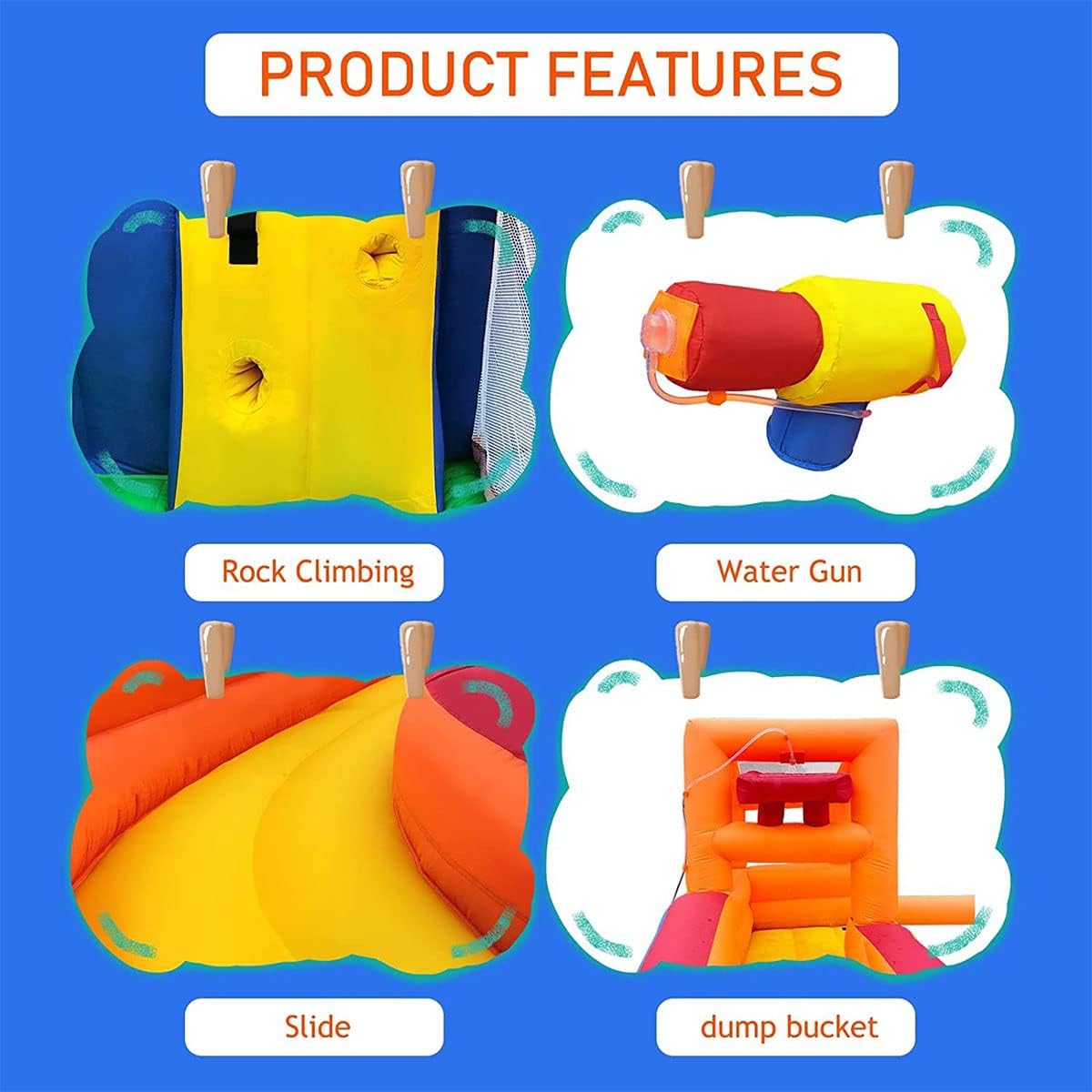 【Plenty of Activities】Inflatable trampoline, slide, climbing wall, ball pit, cannon, etc. Our bouncy castle is the perfect combination of entertainment and is sure to provide endless fun for your kids. Let them go crazy with their friends as they race, climb, run, bounce and slide for pure enjoyment. Wet And Dry Use.