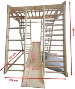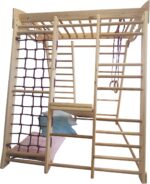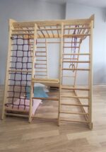 Children’s home gym is a sports assembly for children, it can also be a memorable gift for a child’s birthday. Children can learn to climb the ladder, lift themselves on poles, hang on the rings and climb the rope climbing net. This assembly allows the performance of all these elements, which are very useful for the child`s health, developing coordination and motor skills, it also provides high-quality entertainment. Beech and birch, from which the assembly is manufactured, give this sport center remarkable durability. Children’s home gym is lightweight, does not require any attachment. It is a compact and well-designed sports and gaming center, which can be transported without special effort and is quick and easy to install.