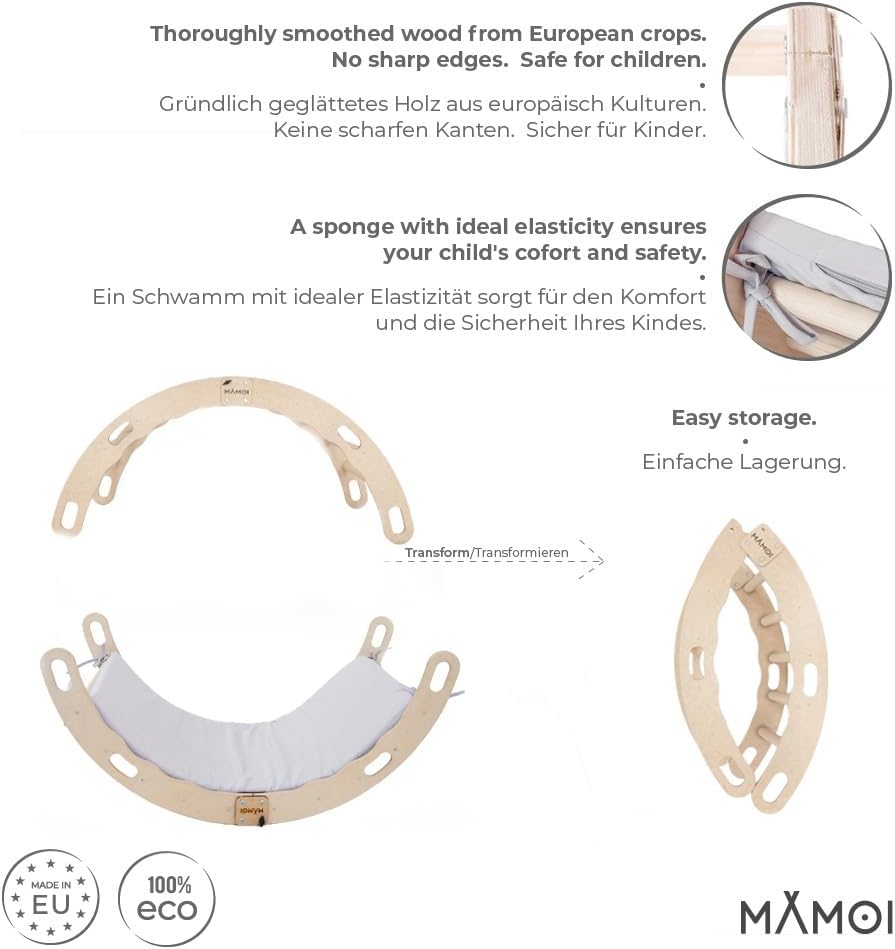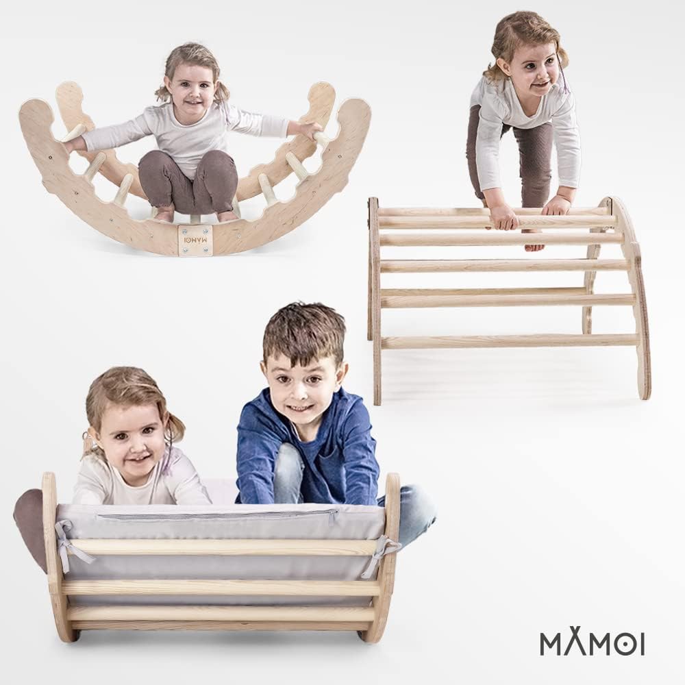 MAMOI® Toddler climbing frame indoor with cushion, Cushion for indoor climbing frame for toddlers, Baby kids climbing dome, Wooden climbing triangle for children from 1/2/3 years