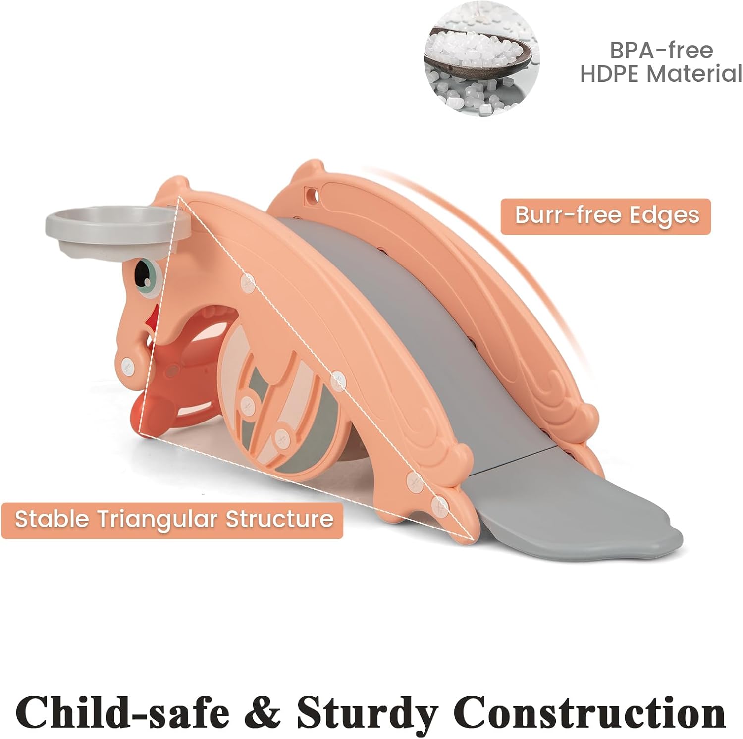 Premium Material & Structure: Made of the BPA-free and odourless HDPE material, this kids play slide set is healthy to long-term use. In addition, stable triangular structure can provide reliable support to 25 kg.