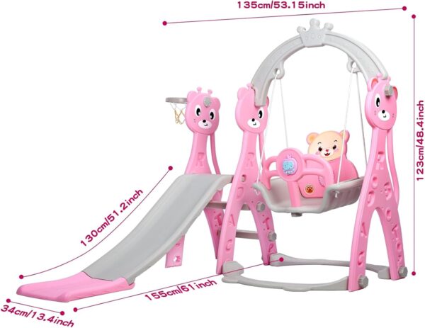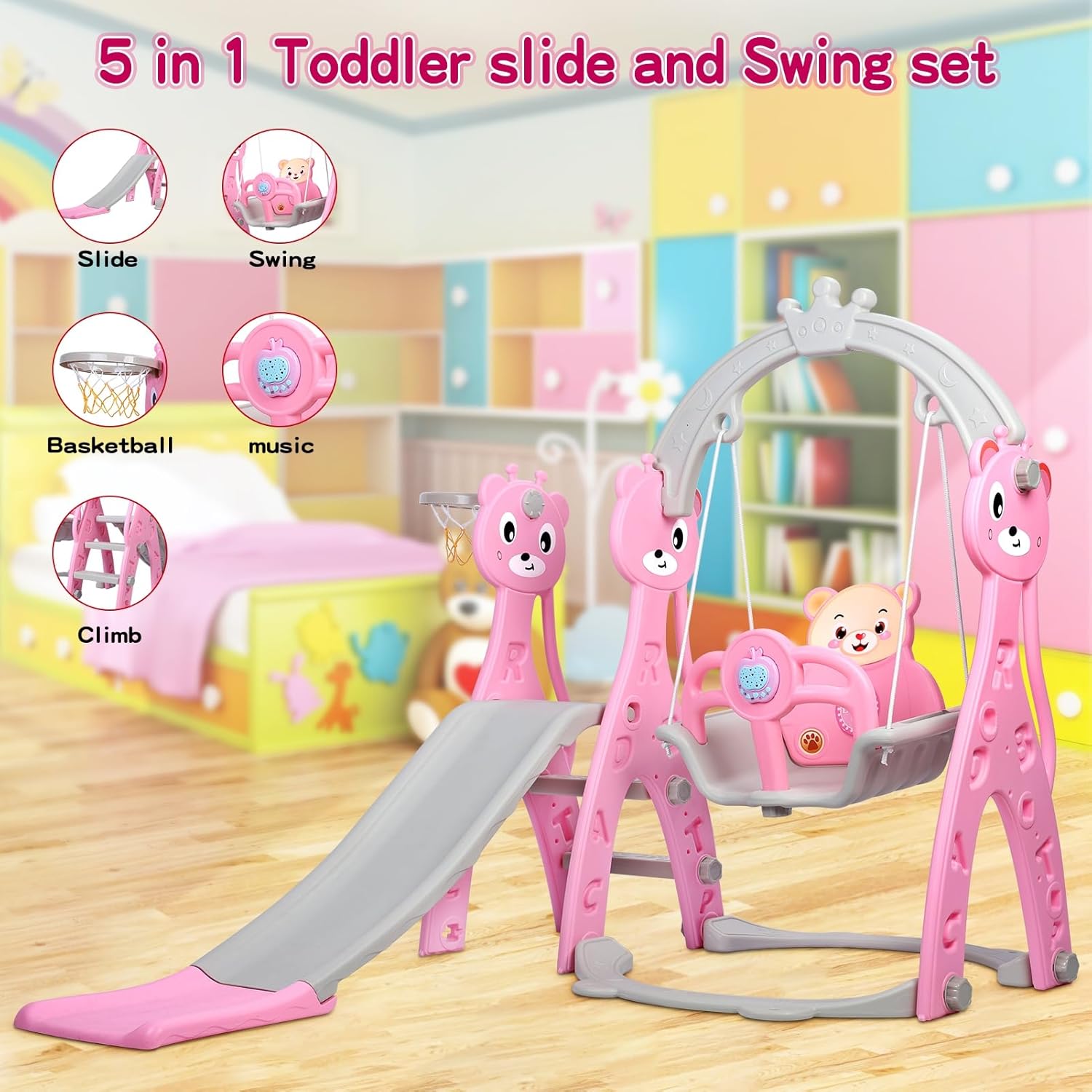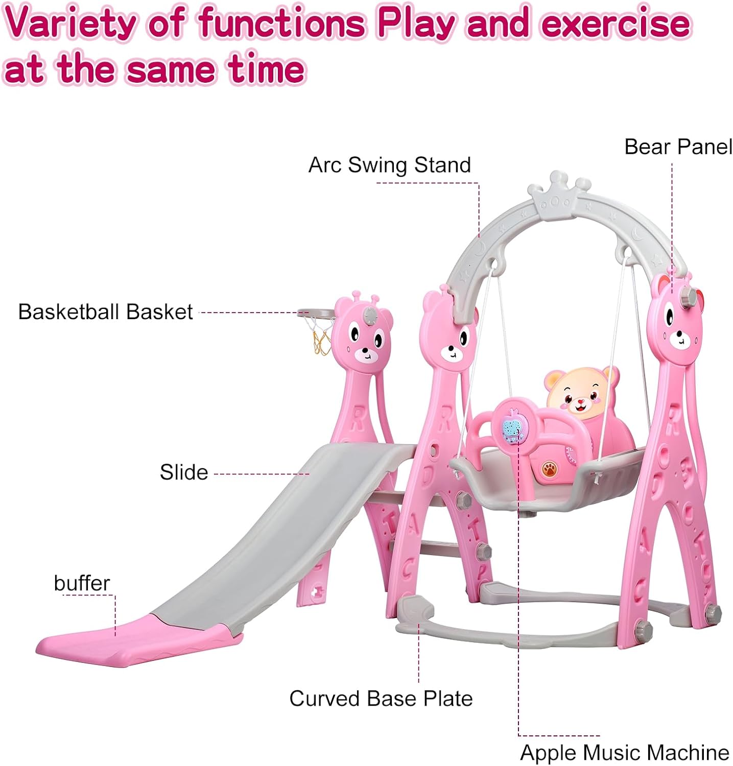 Wilitto 3-in-1 Kids Slide for Toddlers Age 1-8 Slide and Swing Set with Light & Music, Indoor Outdoor Freestanding Kids Slide Climber Playset, Children Climber Slide Toddlers Playset Pink