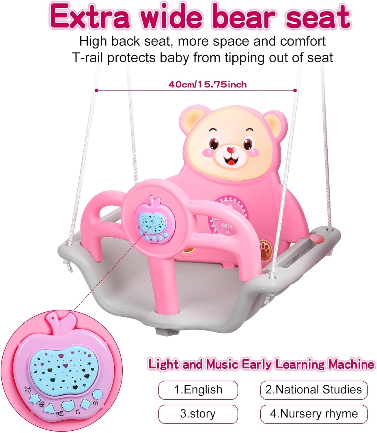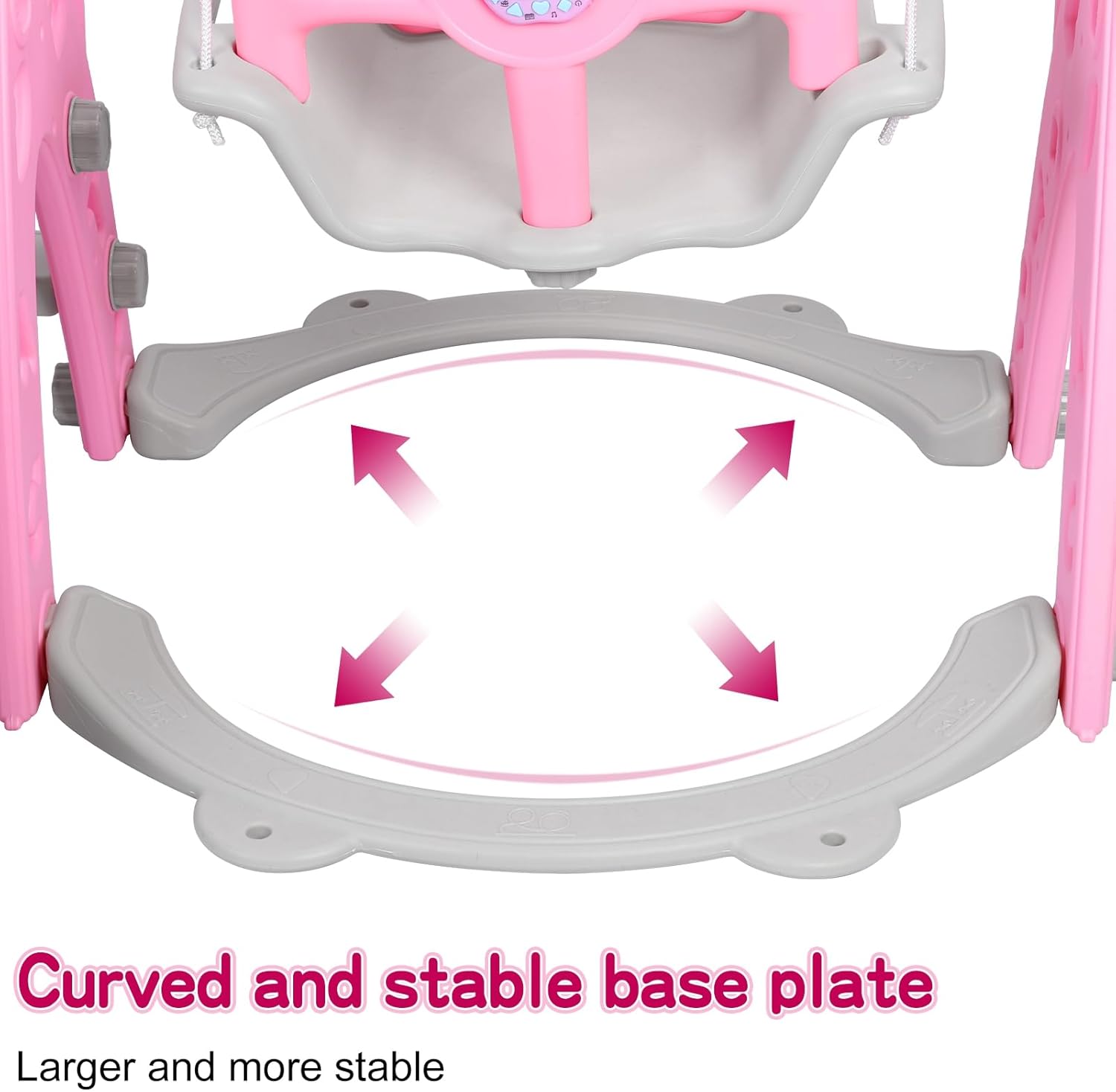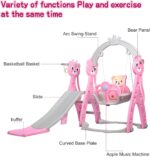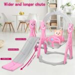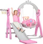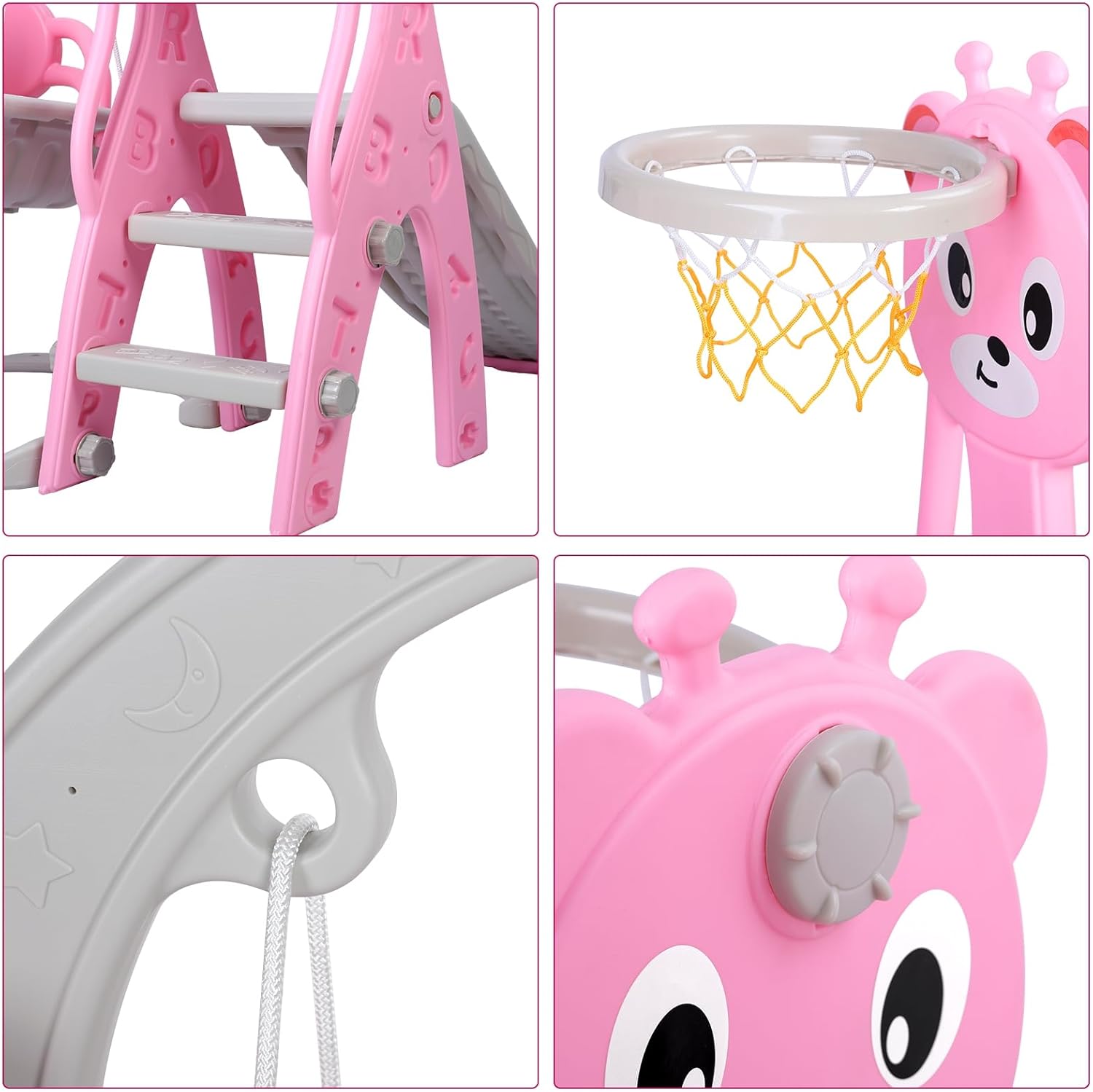 Wilitto 3-in-1 Kids Slide for Toddlers Age 1-8 Slide and Swing Set with Light & Music, Indoor Outdoor Freestanding Kids Slide Climber Playset, Children Climber Slide Toddlers Playset Pink