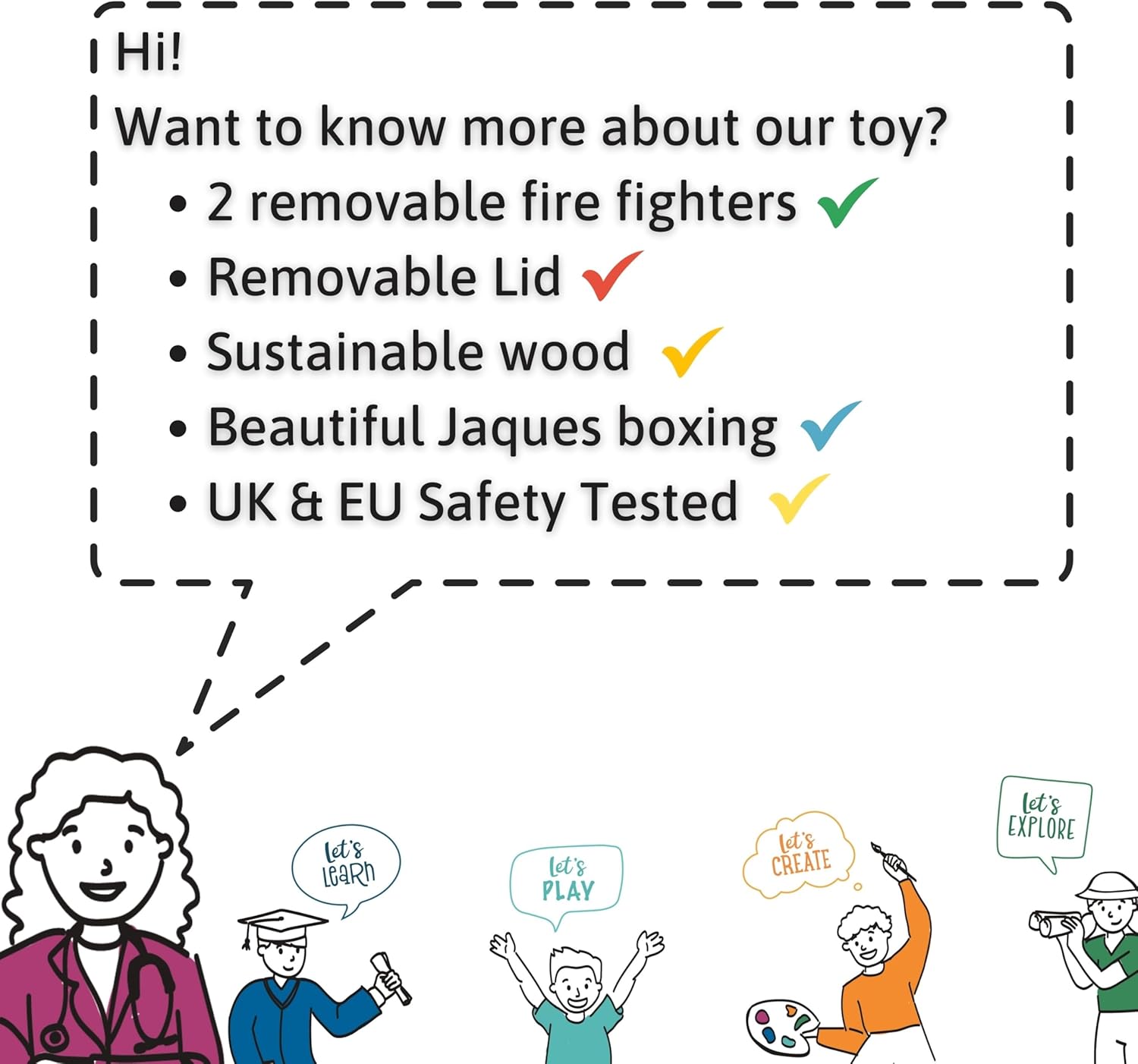 Jaques of London Fire Engine Toys and Fire Truck for Kids aged 1-8 | Wooden Toys for Children aged 1-3 years old | Educational Wooden Fire Engine and Fire Truck Playset | Since 1795