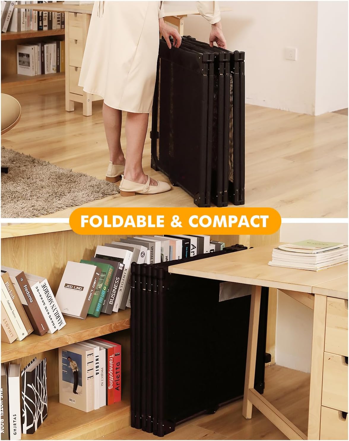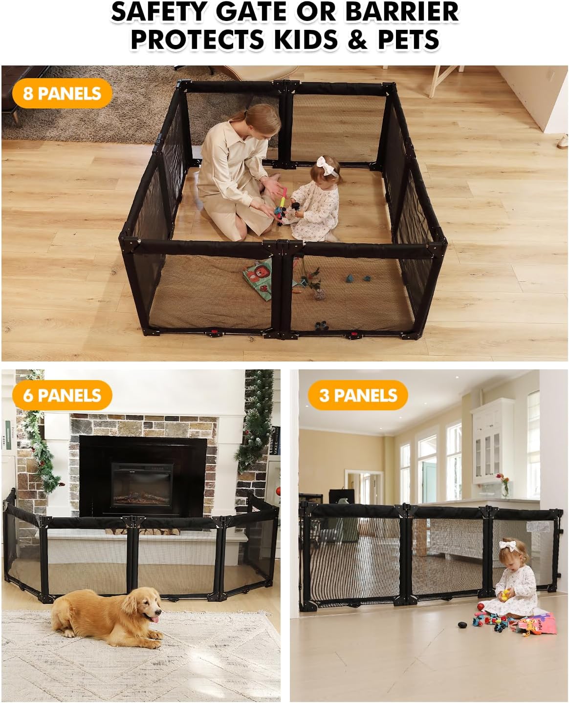 Compact & Portable:This baby gate playpen folds in seconds for effortless storage and transport.Perfect for families on the go, it provides a secure solution without the hassle of bulky equipment.