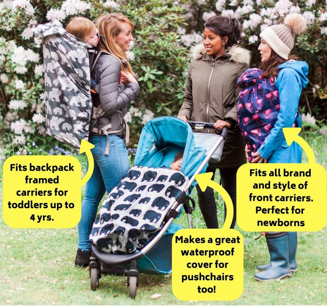 ✅ FUNCTIONAL AND PRACTICAL BRITISH DESIGN – can be used for front or back carries and over any style of carrier, sling, wrap or backpack carrier. The baby carrier cover can also be used as a waterproof cover on pushchairs, car seats and even child bike seats