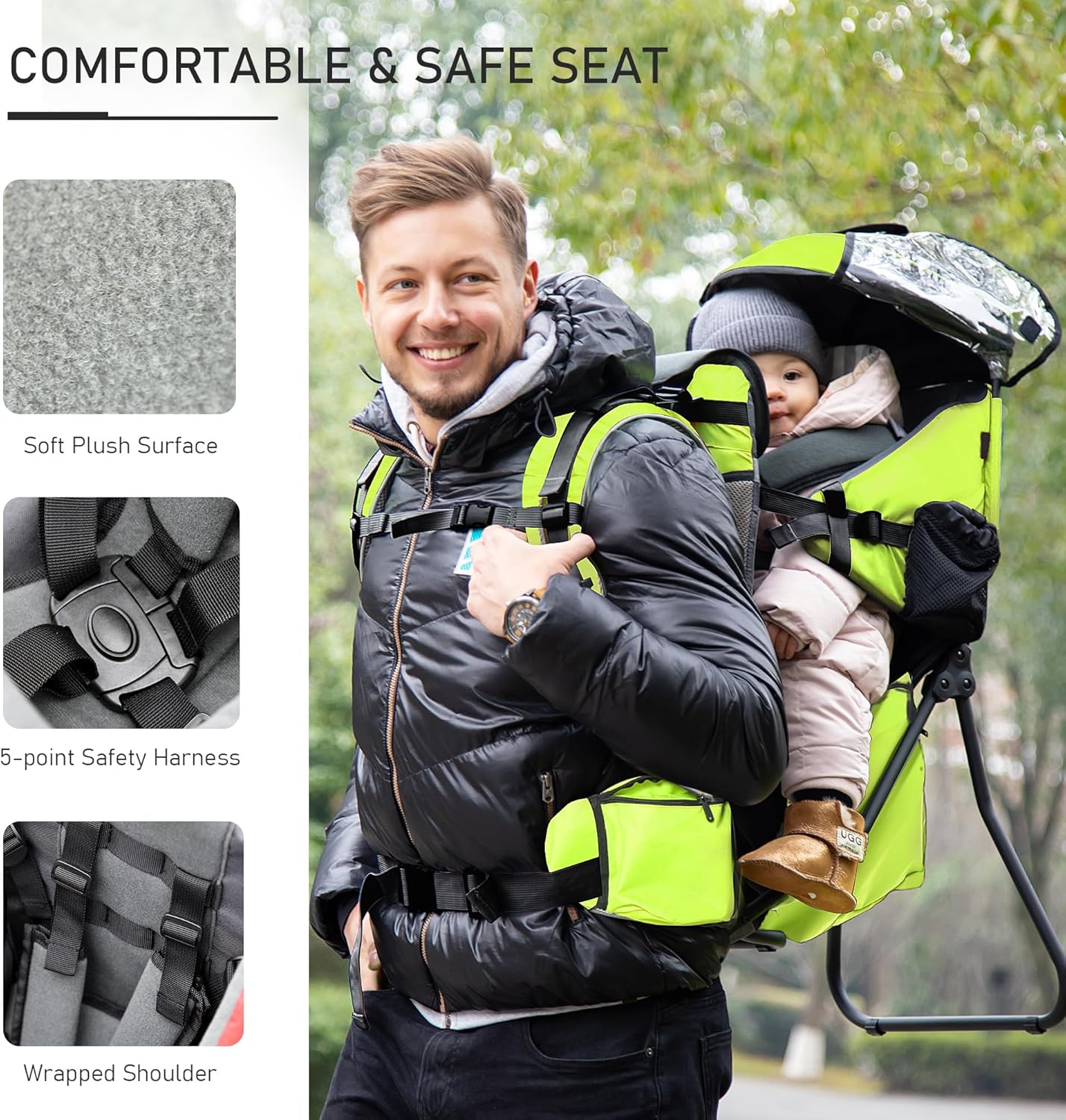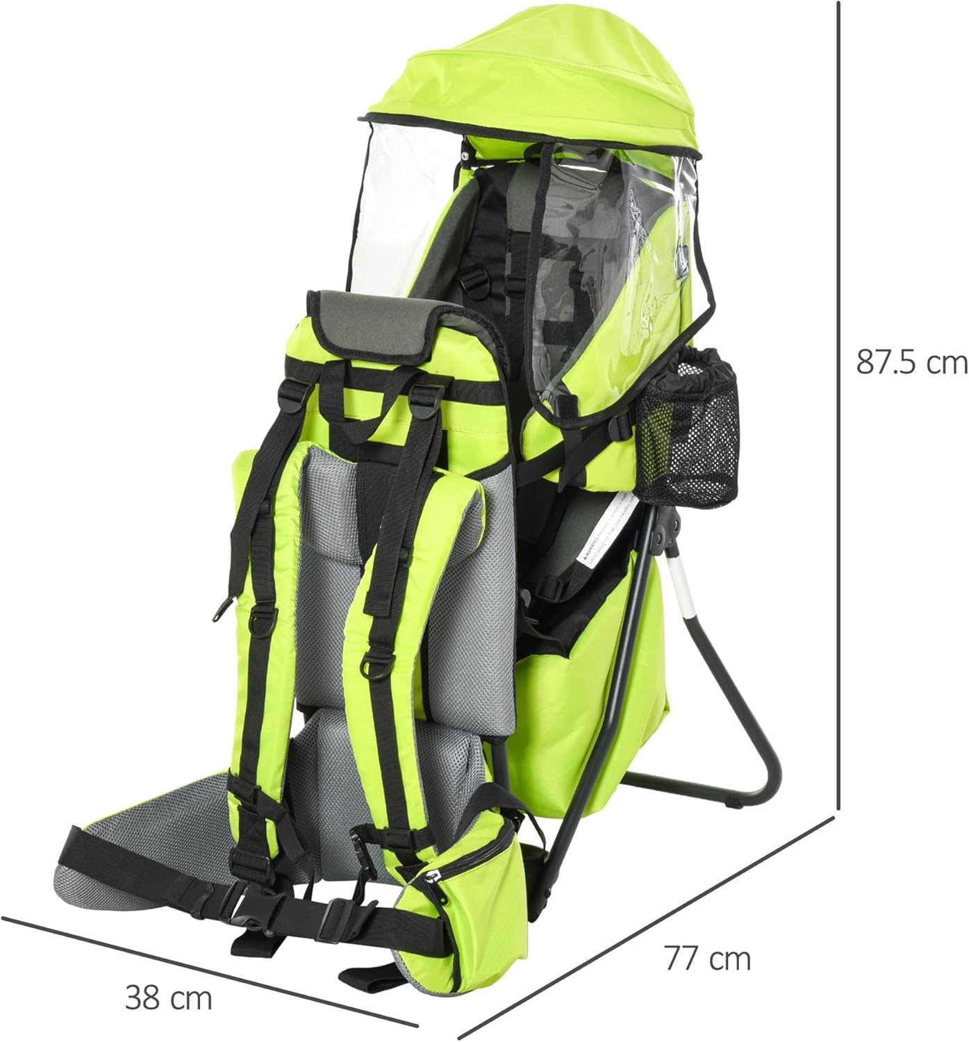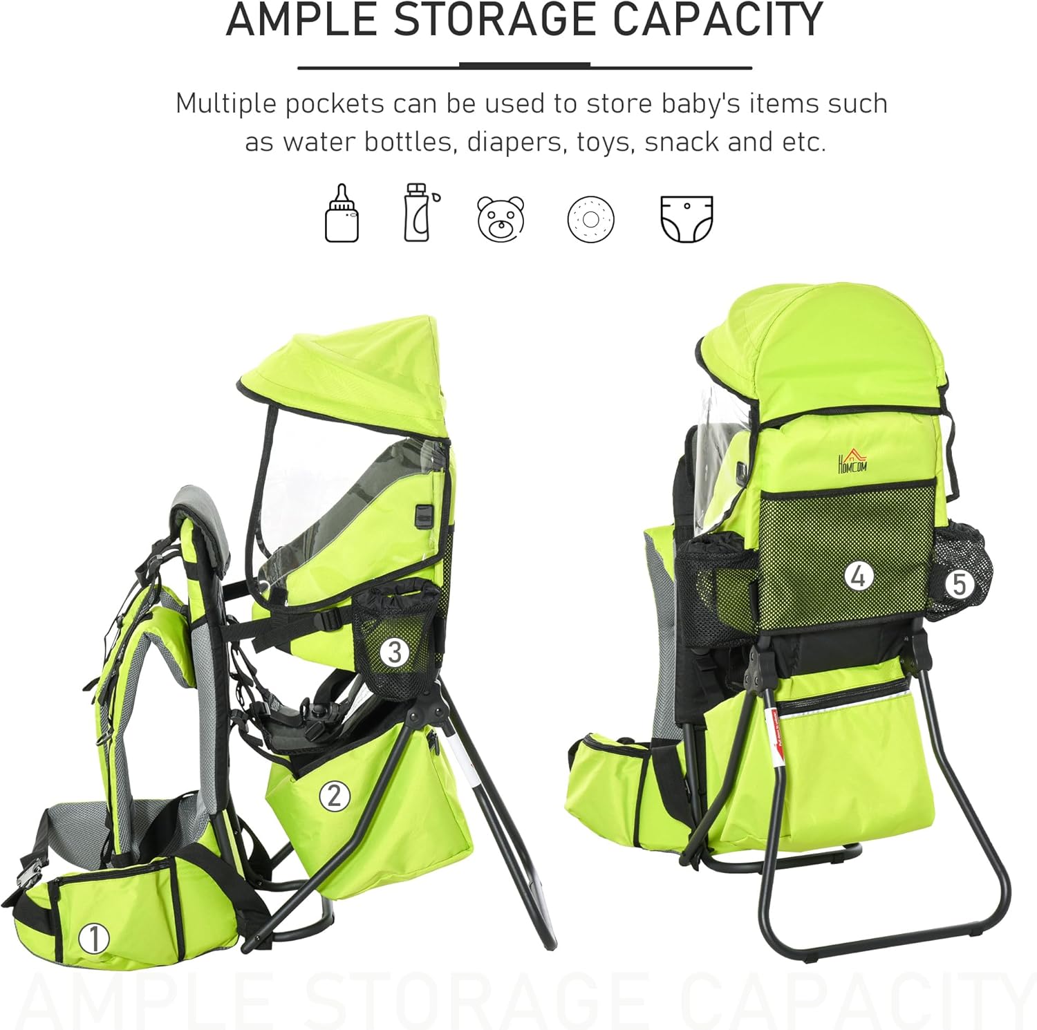HOMCOM Baby Hiking Backpack Carrier Child Carrier with Ergonomic Hip Seat Detachable Rain Cover Adjustable Straps Stand for Toddler 6-36 Months Green