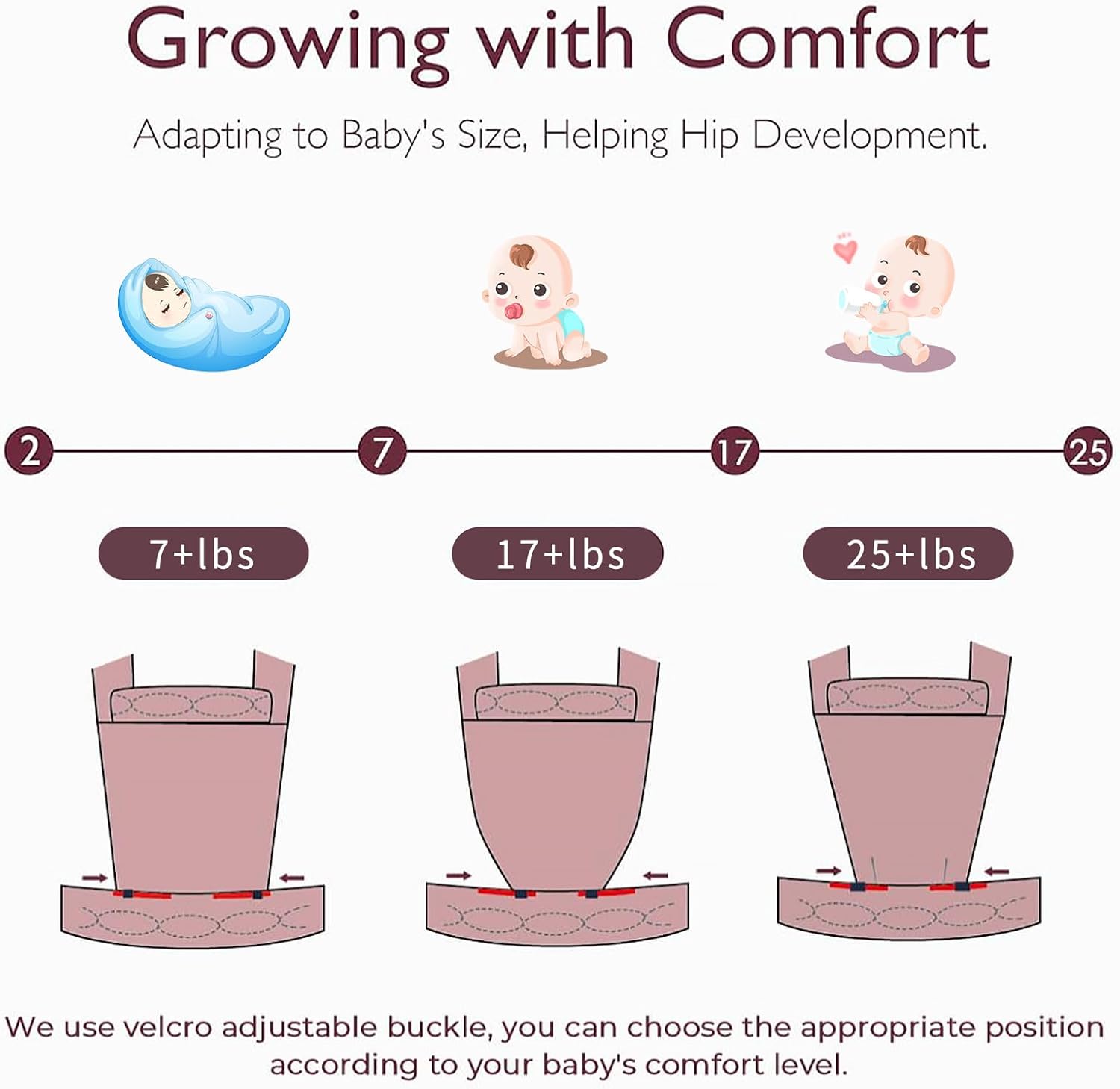 【Ergonomic Natural “M” Shape Design】- The bottom of the baby carrier can be adjusted to the size of your child’s hips by adjusting the Velcro, catering to your child’s growth at every stage for 7-44lbs. Achieve a safe fit and Ergonomic natural “M” position, regardless of your baby’s size that ensures baby’s healthy hip and spinal development.