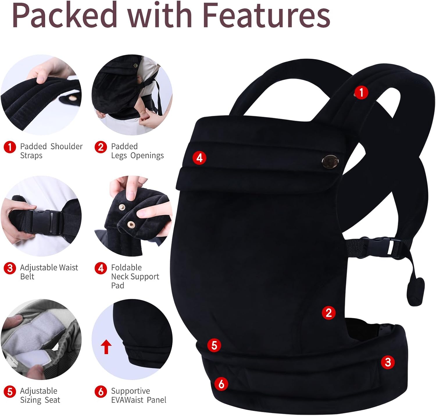 Liderbebe Baby Carrier Newborn to Toddler – Ergonomic,Velvet Fabric Breathable Mesh Cozy and Lightweight Infant Carrier for 7-44lbs,Enhanced Lumbar Support Hands-Free Parenting,All Seasons,Black
